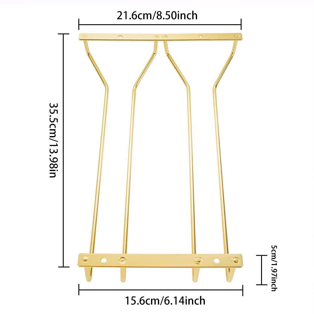 35.5cm ゴールドワイングラスラック キャビネット下ワイングラスホルダー 脚付きグラスラック キッチンバー用吊り下げ脚付きグラスホルダー 2列
