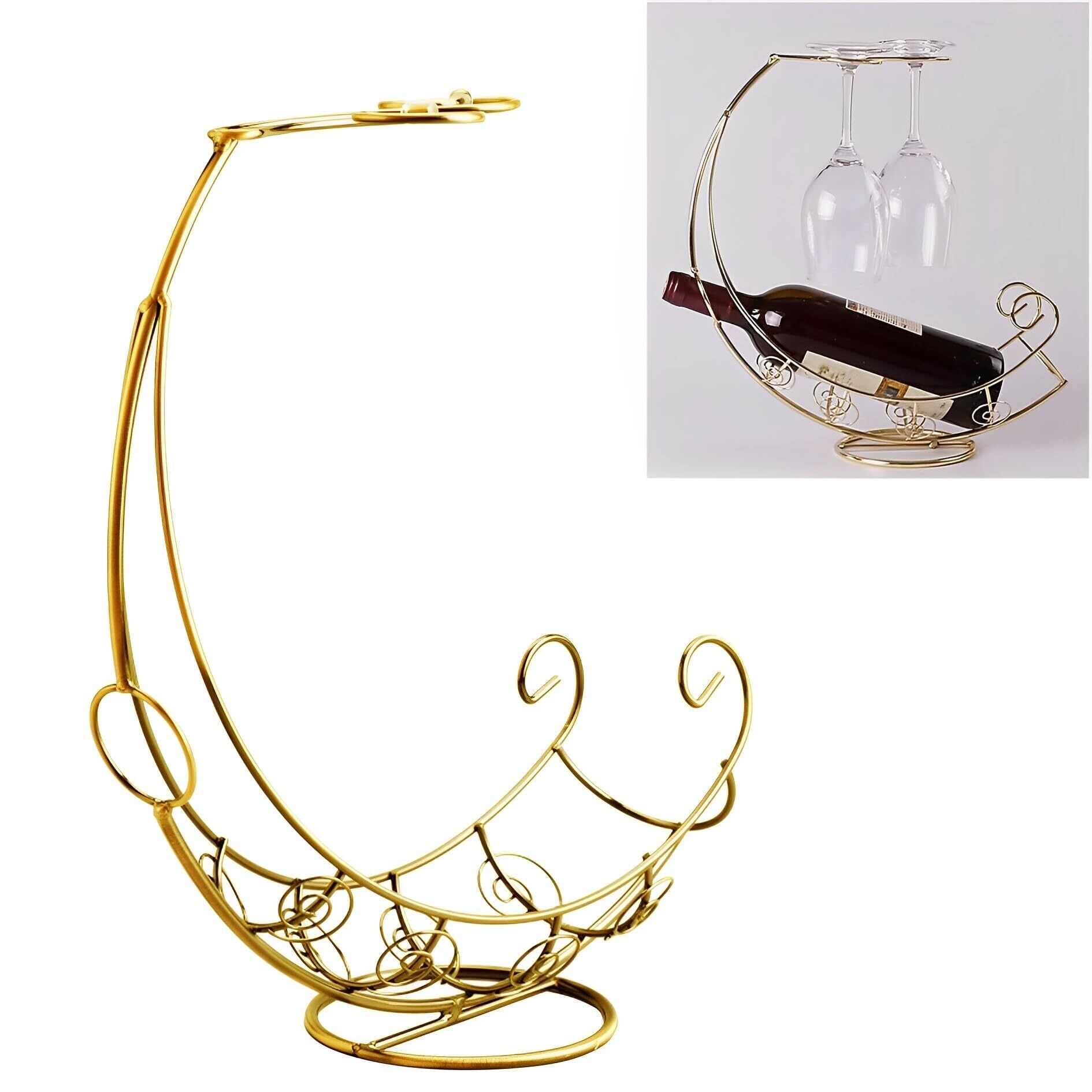 ワイングラスホルダー ワインホルダー ワイングラス ボトルホルダー 吊り下げ 収納 ラック おしゃれ シャンパン ワイン ブロンズ グラス (月船 ゴールド(グラス2脚))