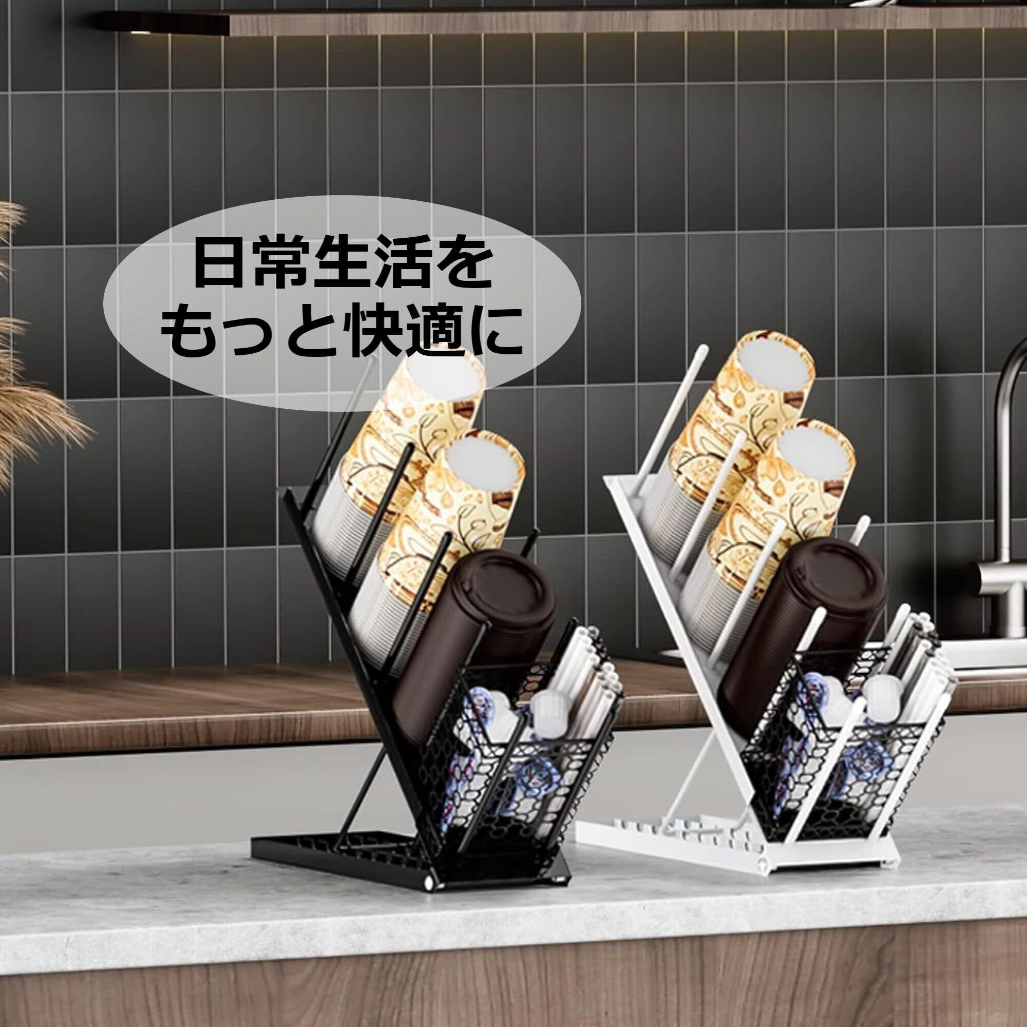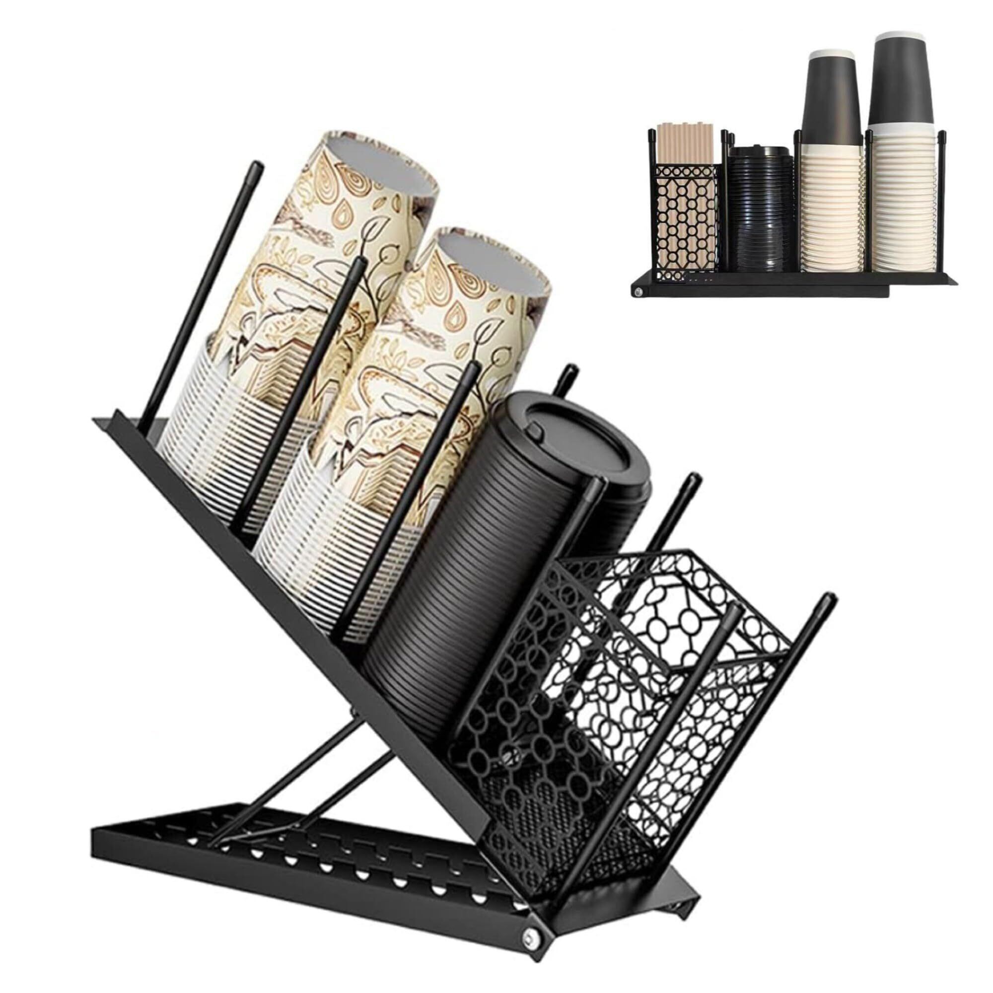《スタイリッシュで安定感ある設計》Asdays 紙コップスタンド マドラー スティック収納 デスク カフェ 店舗 自宅 (ブラック)
