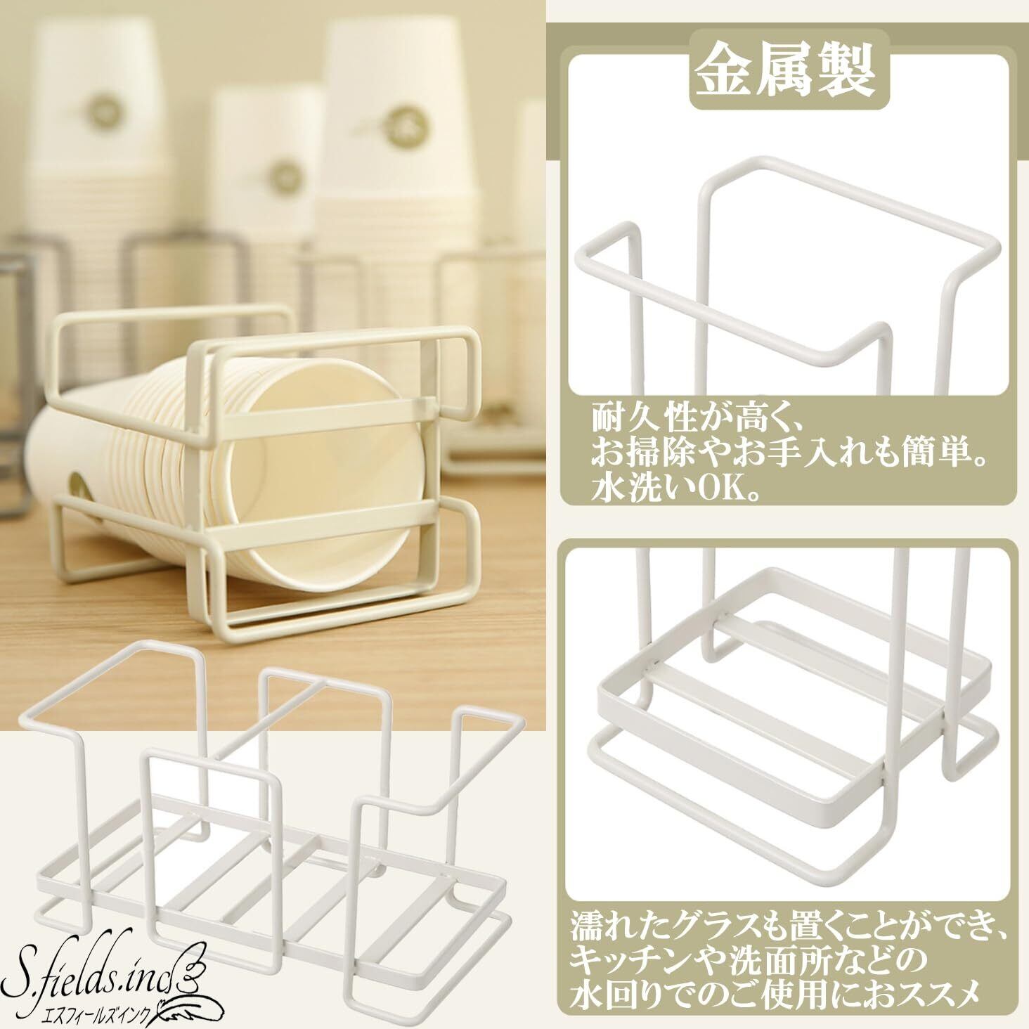 S.fields.inc 紙コップホルダー 紙コップスタンド ストック 9オンス対応 金属製 カップディスペンサー (ダブル)