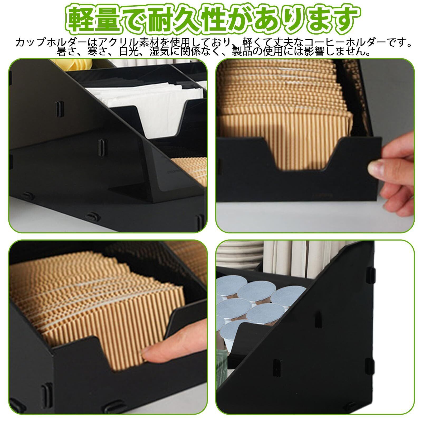 紙コップホルダー コップスタンド カップディスペンサー コーヒーカップ入れ 長さ16.8 cm幅33.7 cm高い28 cm スッキリ アクリル 耐久性 組み立て不要 おしゃれ 紙ナプキン カップのふた ストロー シュガーパケット お手拭き 事務所 カフェ キッチンカー営業に使用