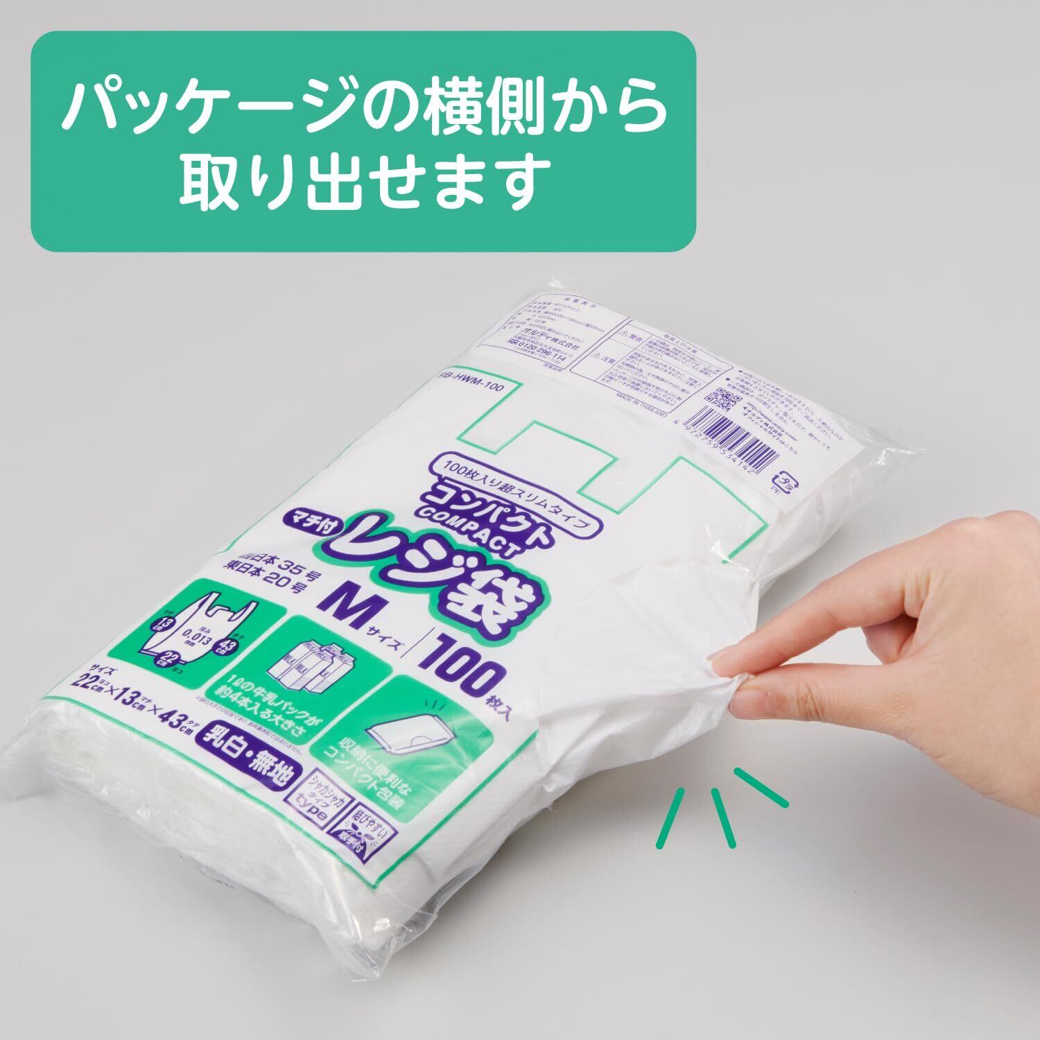 ●収納しやすいスリムなコンパクトパッケージの100枚入りレジ袋