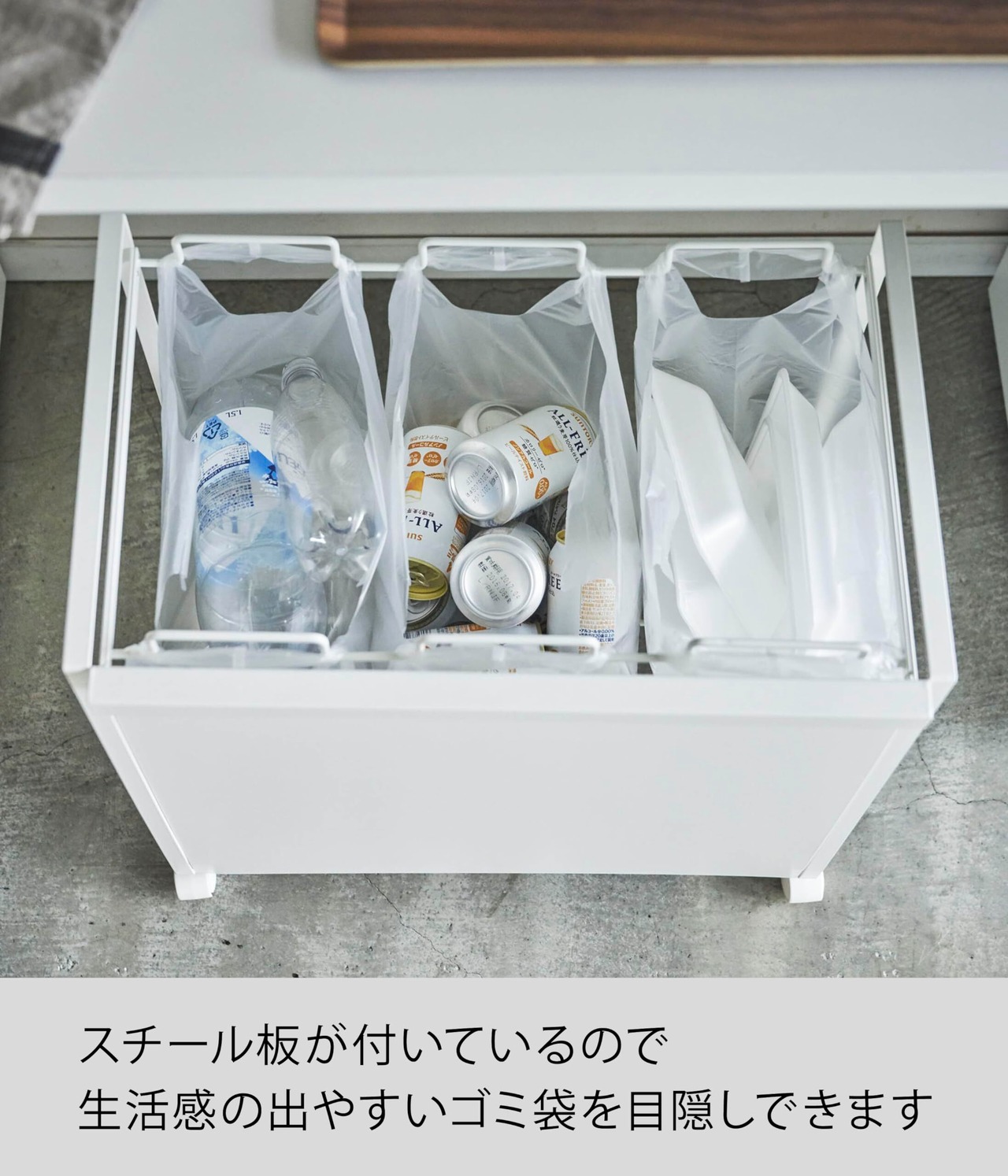 山崎実業(Yamazaki) 目隠し分別ダストワゴン 3分別 ホワイト 約W51.5XD32XH55cm タワー ゴミ箱 ハンドル・キャスター付 簡単に取り出せる フタなしゴミ箱 4332