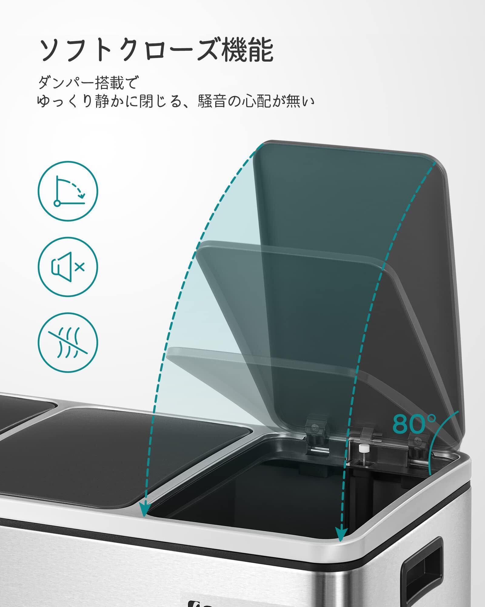 SONGMICS ゴミ箱 ダストボックス ペダル式 3分別 3×18L インナーバケット三つ ステンレス 密閉 音無し おしゃれ 横型 室内 キチン ベランダ 蓋付き LTB54NL