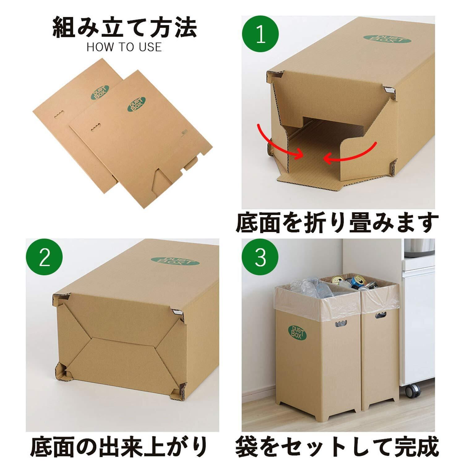 下村企販 ゴミ箱 ダンボール ダストボックス 2個組 強化ダンボール 脚付き 45L 簡単組み立て リサイクルに出せる 分別 エコ 野外 イベント キャンプ 燕三条 16048