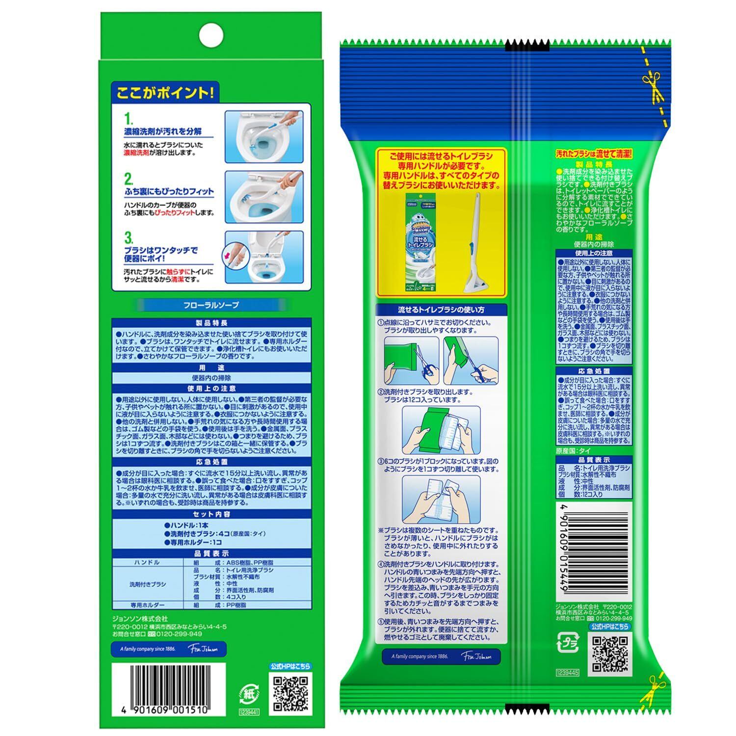 スクラビングバブル (Scrubbing Bubbles) 流せるトイレブラシ フローラルソープの香り 本体+付け替え16個 (本体付属4個+付替品12個) 黒ズミ ブラシ 使い捨て 洗剤 まとめ買い