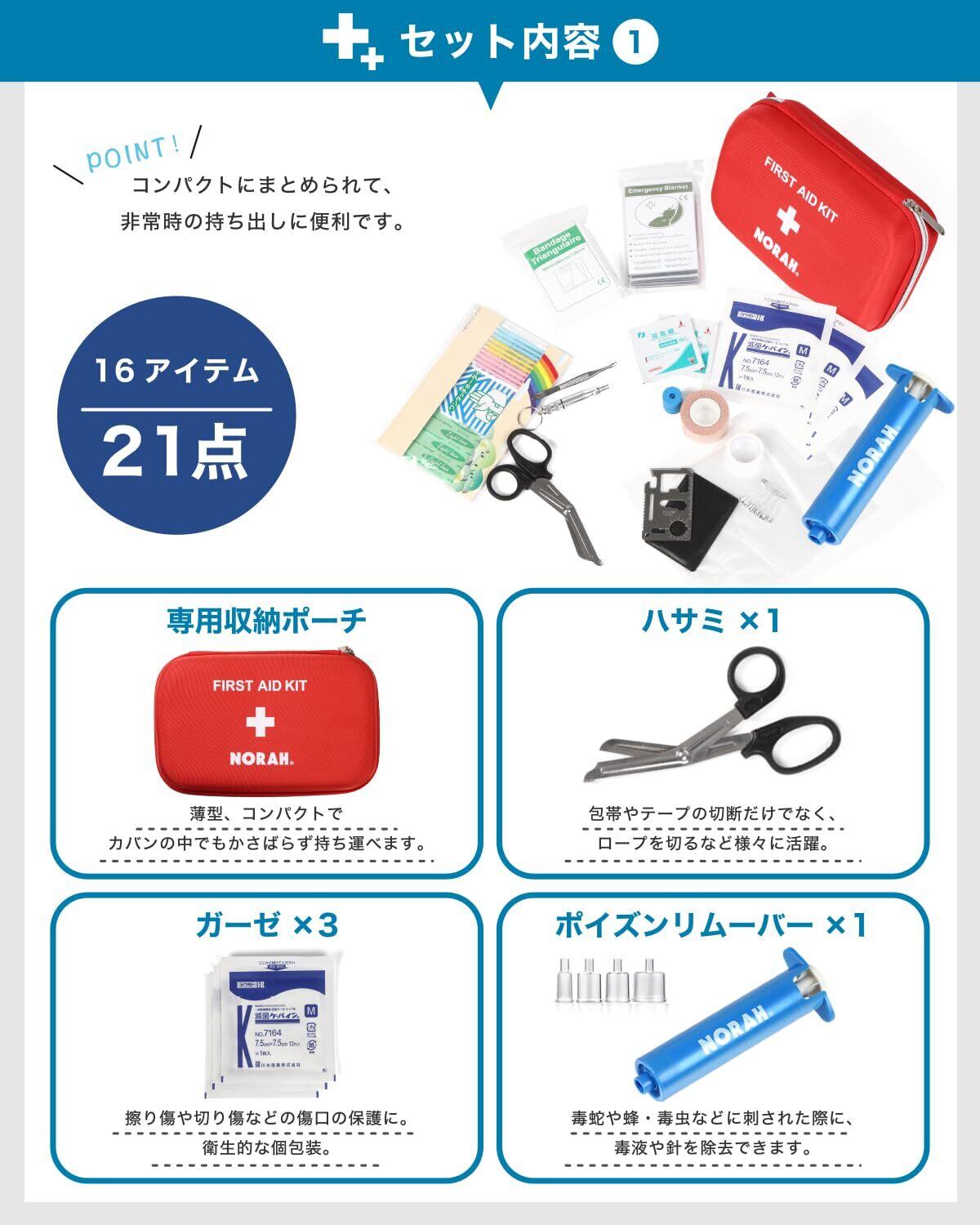 救急セット 救急箱 ファーストエイド 登山 応急処置 強吸引 ポイズンリムーバー 21点セット NORAH