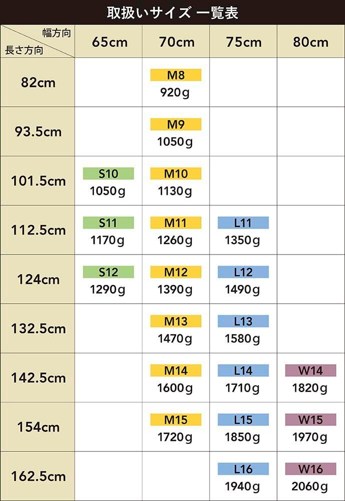 ■製品サイズ:(約)幅:75cm×長さ:154cm×厚み:8mm、製品重量:(約)1850g 耐熱温度:70度