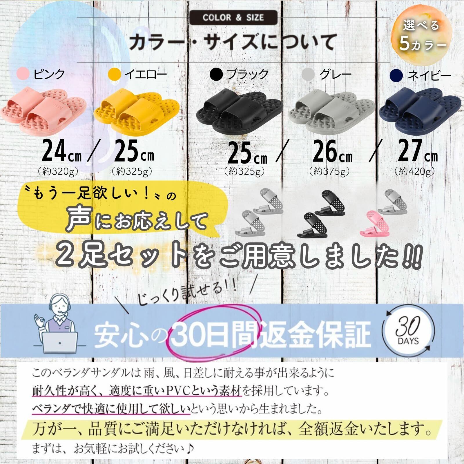 ※PVC素材は色ムラや発色差が出やすい特性がありますが、強さと耐久性に優れ、品質に問題はありません。 【水捌けが良く、足が濡れない】雨上がりにサンダルを使用すると『靴下がびっちょり......』なんて経験ありませんか?Riimosのベランダサンダルはソール全面が穴あき構造のため水捌けが良く、すぐに乾くため足が濡れません。