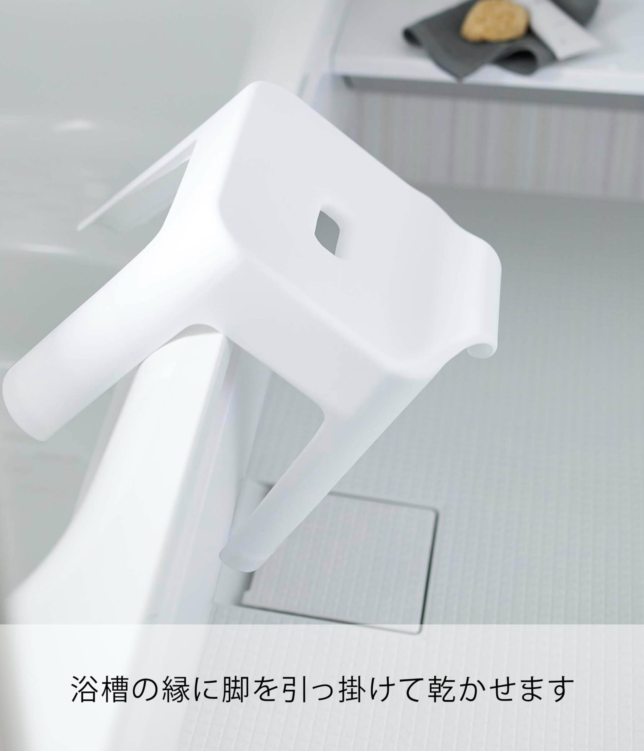 浴室のタオルバーなどに掛けて乾かせるフック付き風呂イス。