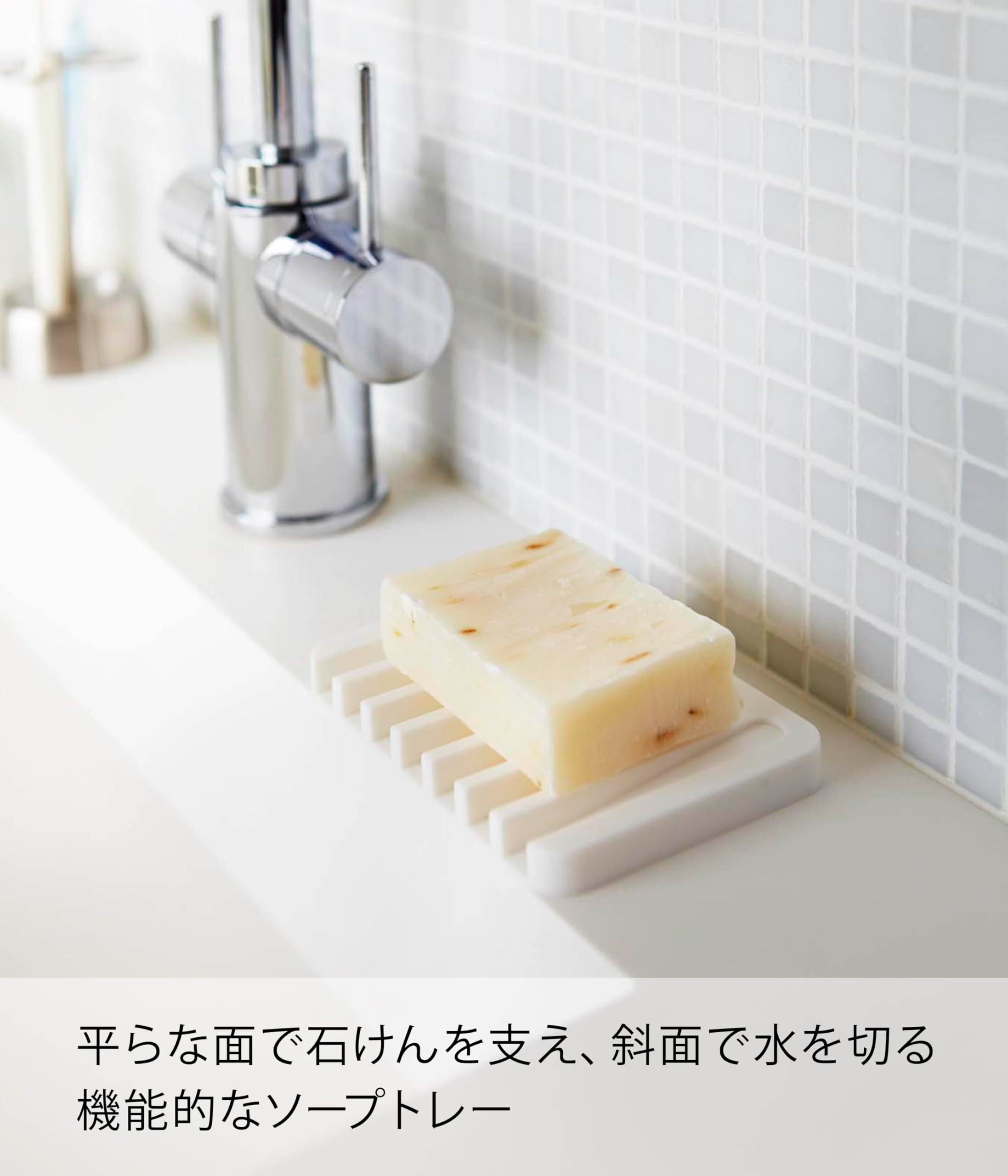 ●平らな面で石鹸を支えながら、斜面で水を切ることができる機能的なソープトレー