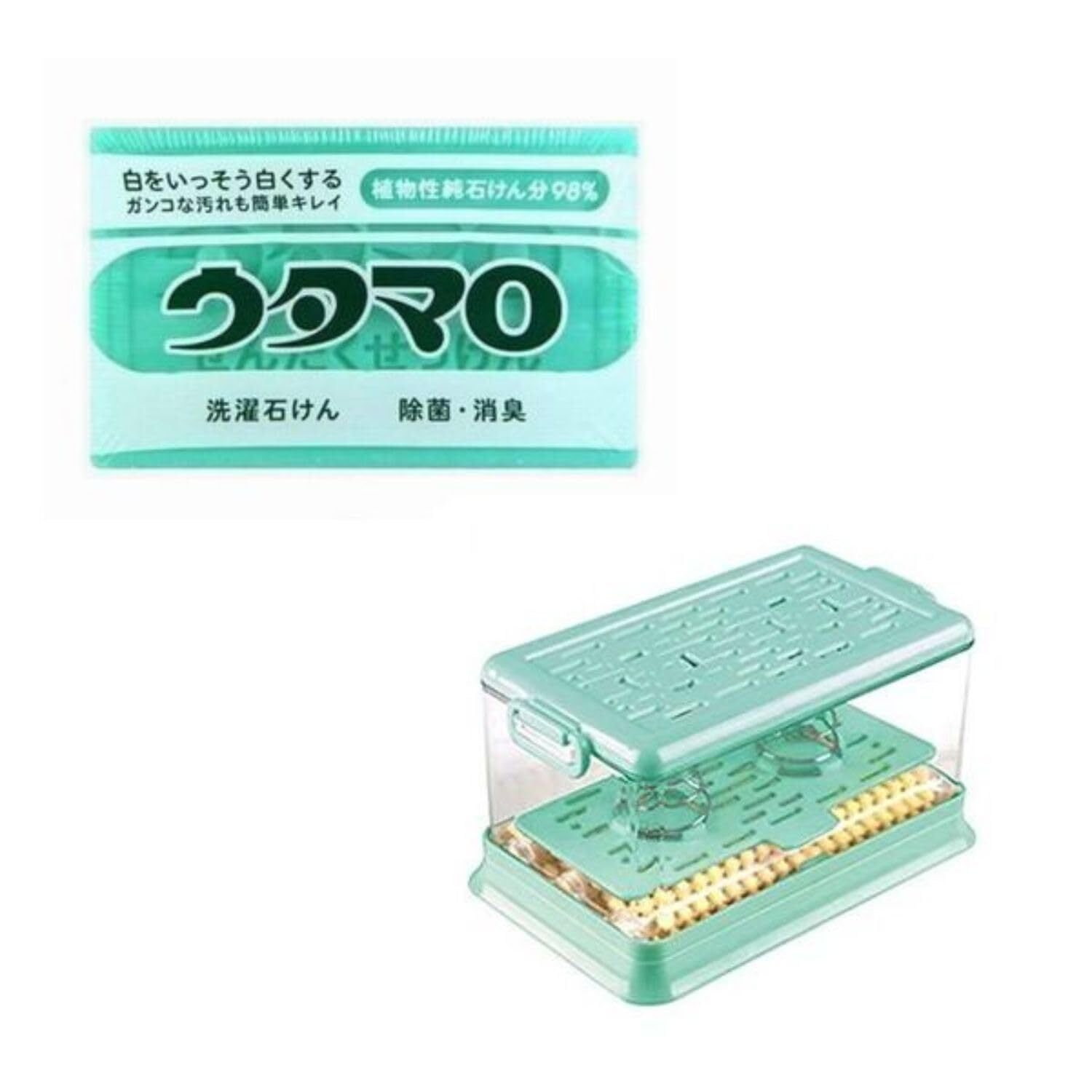 ウタマロ石鹸1個+石鹸ケース ブラシ付き ケース 泡立つ石鹸ケース 家庭用 浴室 台所 旅行 便利 グッズ ブラシ付き 石鹸ボックス 多機能ソープディッシュ 泡立つ洗濯せっけんケース 靴下 上履 襟、袖、衣類の汚れ (グリーン)