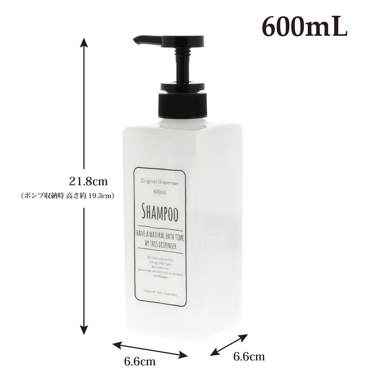 【2022最新】リビング(Living)ディスペンサー ポンプボトル スクェア シャンプー用 ホワイト 600ml