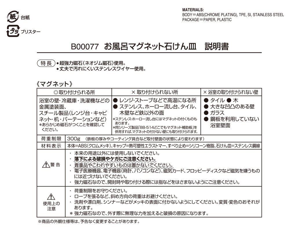 【人気商品】レック お風呂の壁に マグネット 石けん皿 (強力磁石) ステンレス B00077
