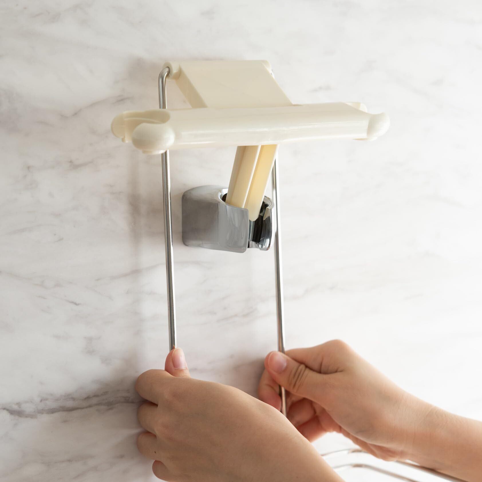 本体・フック:ステンレス、本体樹脂部(ハンガー・可動プレート):ABS樹脂、石けん皿:ポリプロピレン