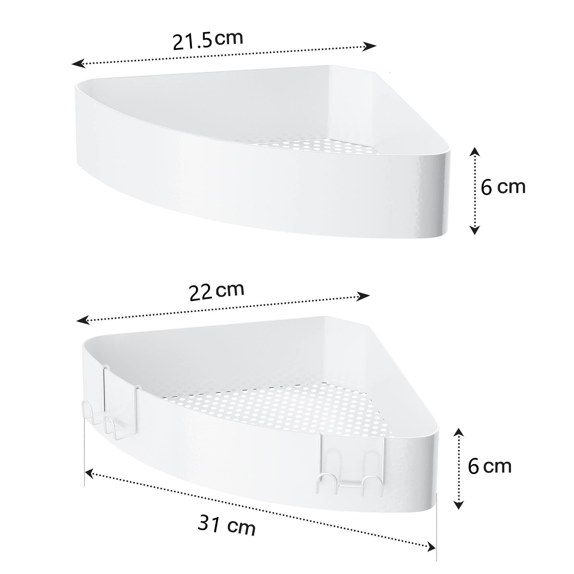 中身の物品:2xコーナーシャワーラック(W31×D22×H6cm)、フック 4 個。コーナー棚の角度は90度ですが、実際の設置位置が90度になっていない場合や、輸送中に棚が変形した場合などはご注意ください。 返金または交換を申請できます。ご不明な感点がございましたら、お気軽にお問い合わせください。