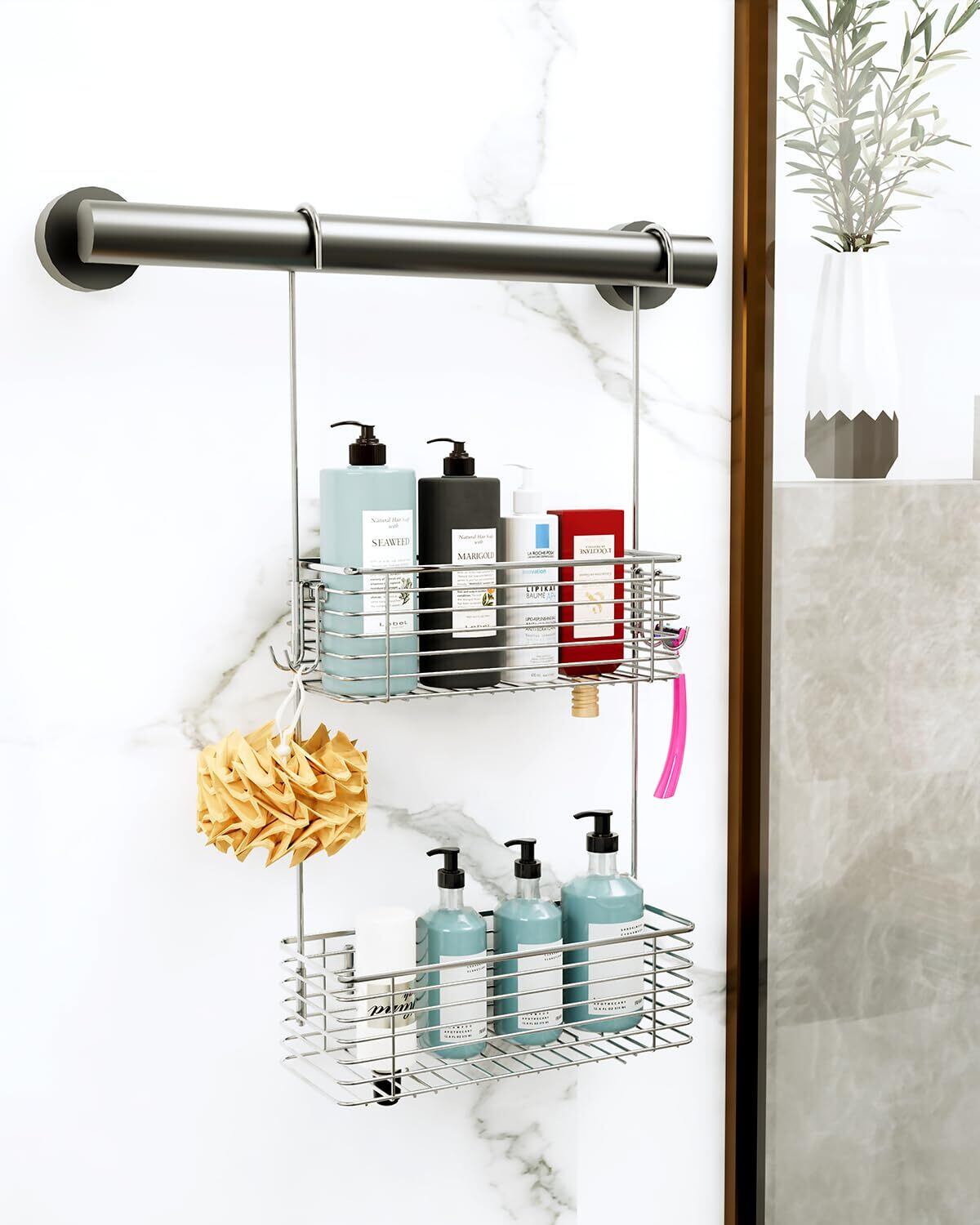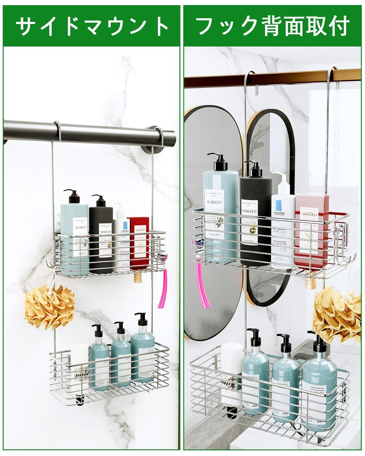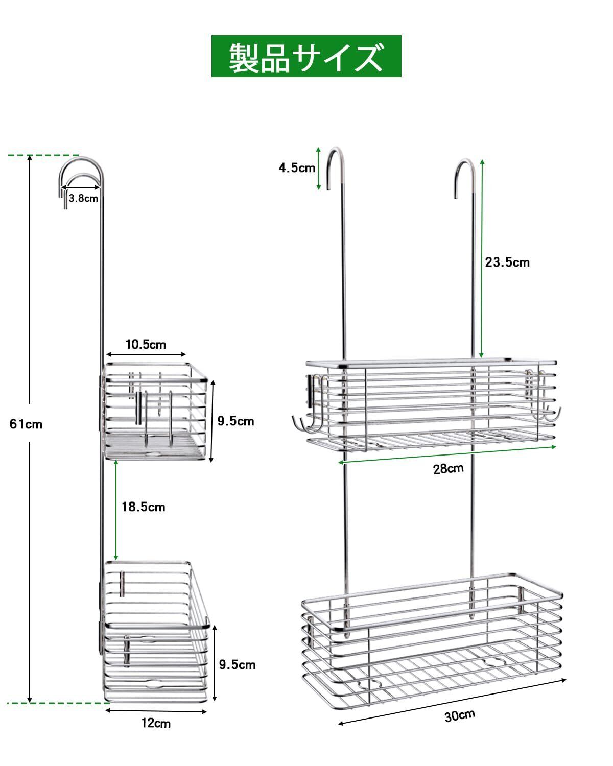 大容量: バスケットには、シャンプー、石鹸、ボディウォッシュなどの入浴用品を収納できる十分なスペースがあります。