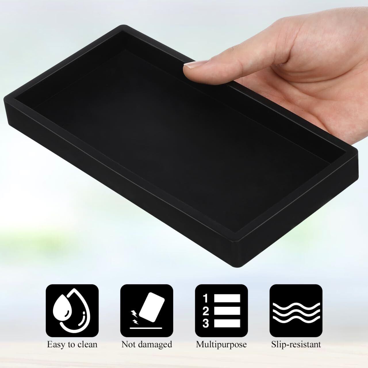 Kichvoe シリコンバスルームトレイ 小物収納 20cm*10cm 長方形 ブラック 石鹸置き 香水 化粧品 ジュエリー キッチンシンク用 防滑 防水