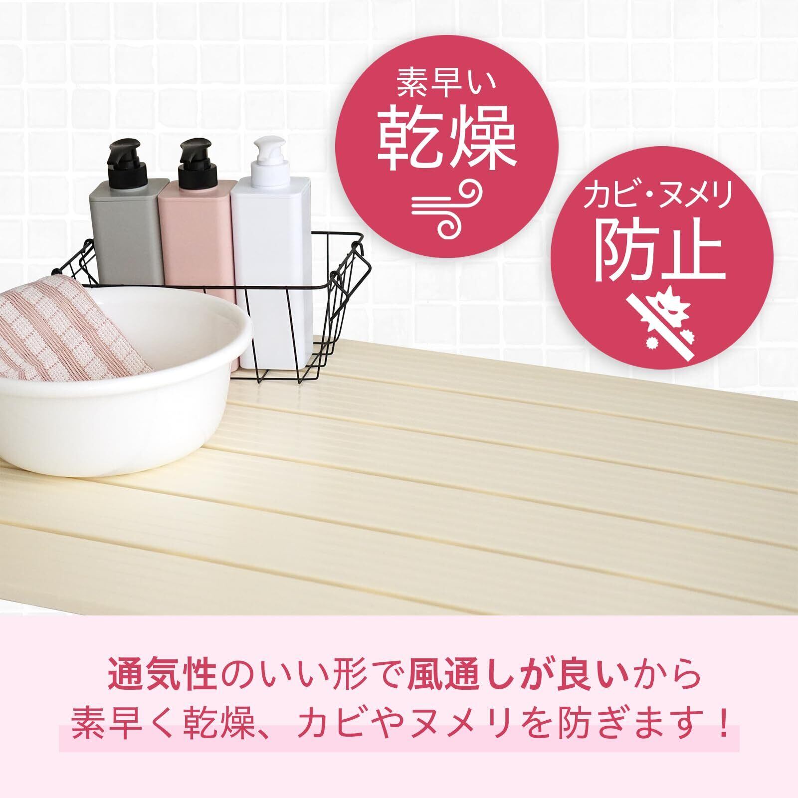 スノコの表・裏面に石鹸水や汚れ、ぬめりがありますと、ご使用中すべりケガの原因となりますので、よく洗い流してください。