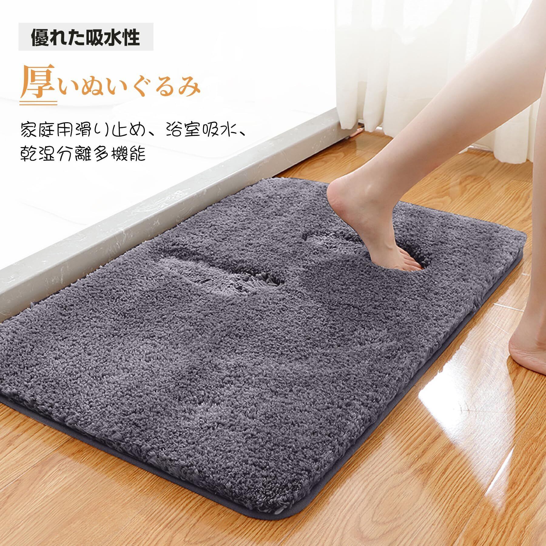 【ふわふわ肌触り】バスマットの表地はマイクロファイバー素材を使用、柔らかな肌触り、濃密な長毛が足を包み込むような踏み心地、雲の上を歩くような質感で、足を非常に柔らかくサポートします。疲れた足を落ち着かせてくれます。