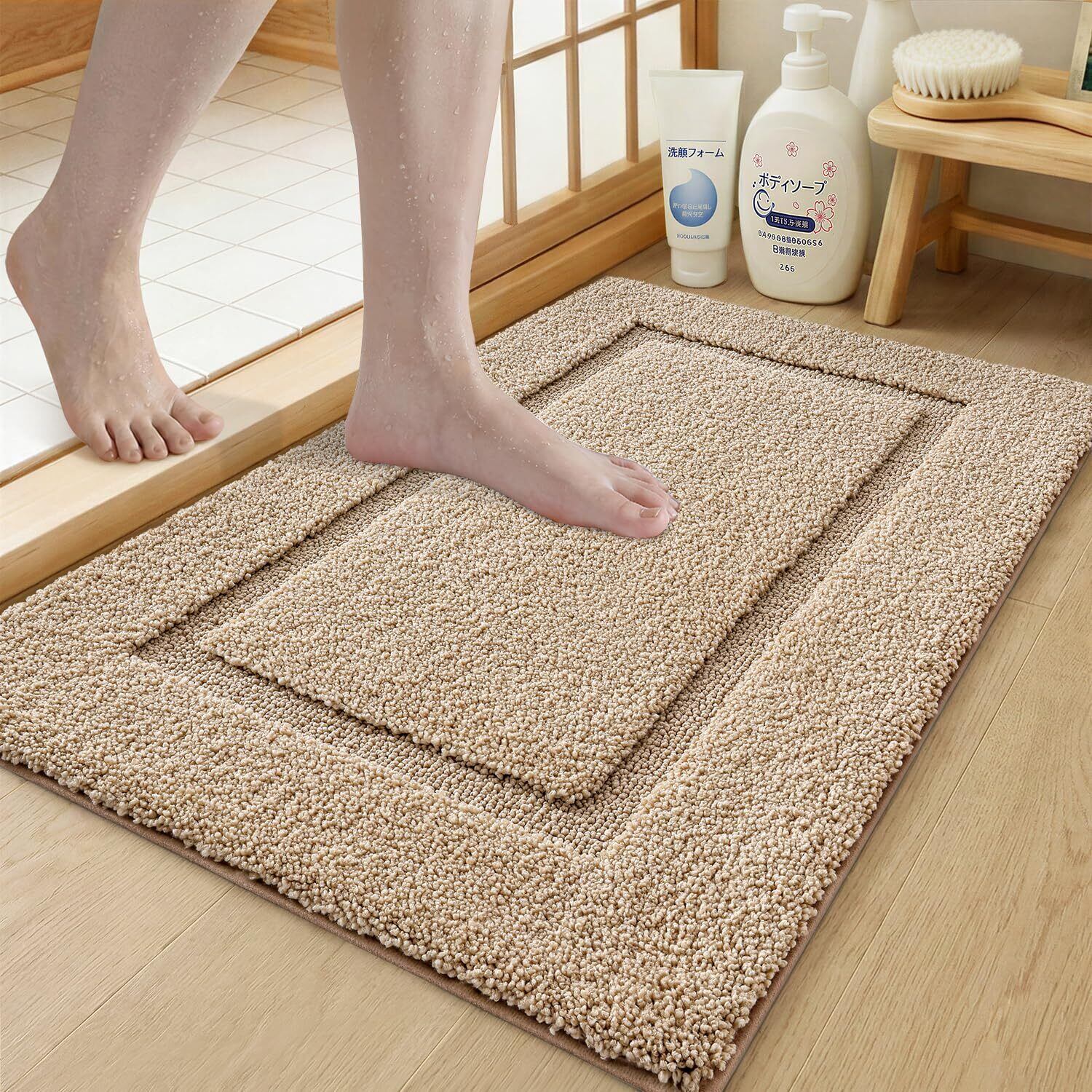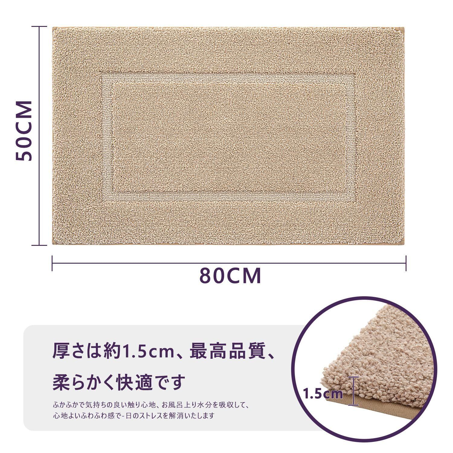 DEXI バスマット 速乾 お風呂マット 高吸水力 足拭きマット 滑り止め 洗える マイクロファイバー 浴室 洗面所 バスルーム 50×80cm ベージュ