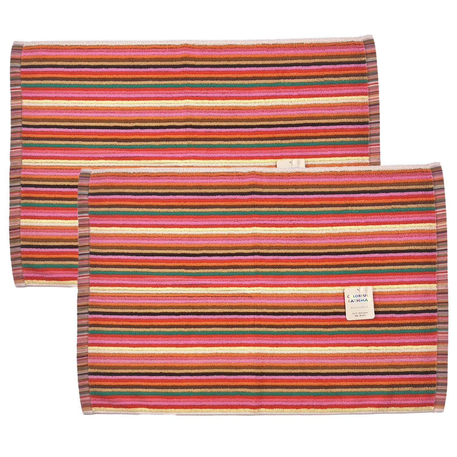 シンプルフレッシュ(Simple Fresh) 綿100% 残糸で作ったカラフルバスマット 約45×65cm ピンク系