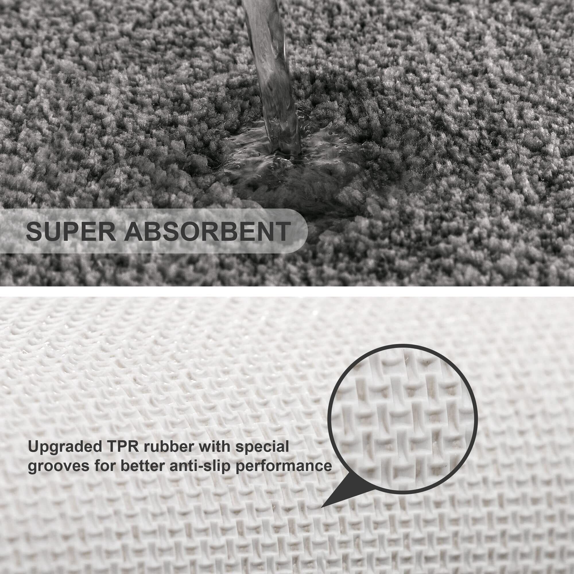 【滑らないバスマット】アップグレードされた無毒のTPRラバーバッキングが装備されており、耐久性が非常に高く長持ちする設計です。底の独特な溝はより安定する効果を生み、家族が滑ってしまうことを防ぎます。滑り止めの性能を最大限に引き出すためにも、バスマットの底を常に乾いた清潔な状態に保ってください。