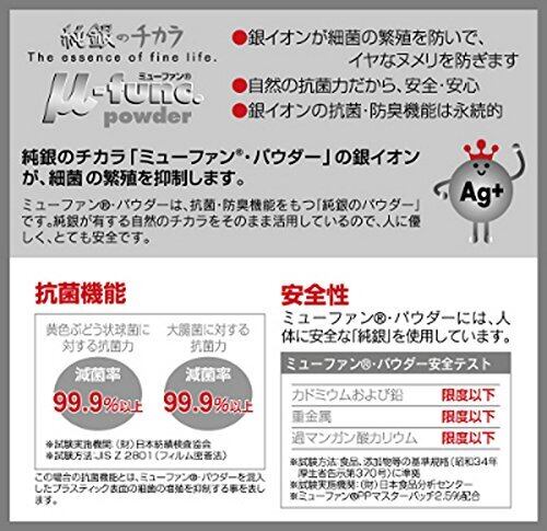 純銀のチカラ(ミューファンパウダー)をフチの部分に配合、銀イオンが細菌の繁殖を抑制します。