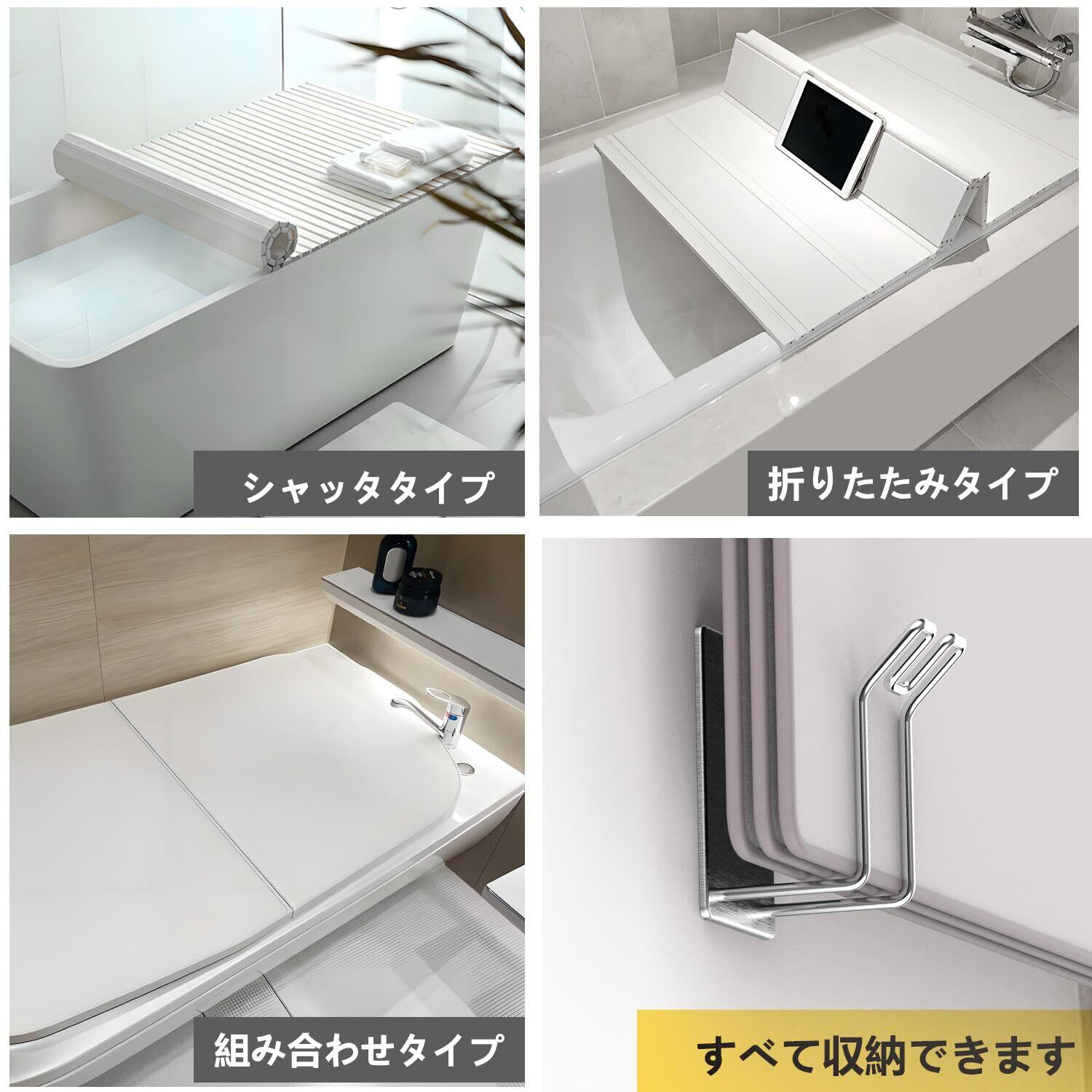 【浮かせる収納で衛生的】風呂ふたを浮かせて収納できるので、水滴がたまらずカビや水アカの対策にも一役買ってくれます。 蓋置の理想パートナーです!風呂ふたフック磁石乾きやすい地面スペースも取らない、浴槽蓋を邪魔せずに風呂地面の掃除は迅速にできます。 風呂場をキレイ清潔にこだわるお客様にピッタリです