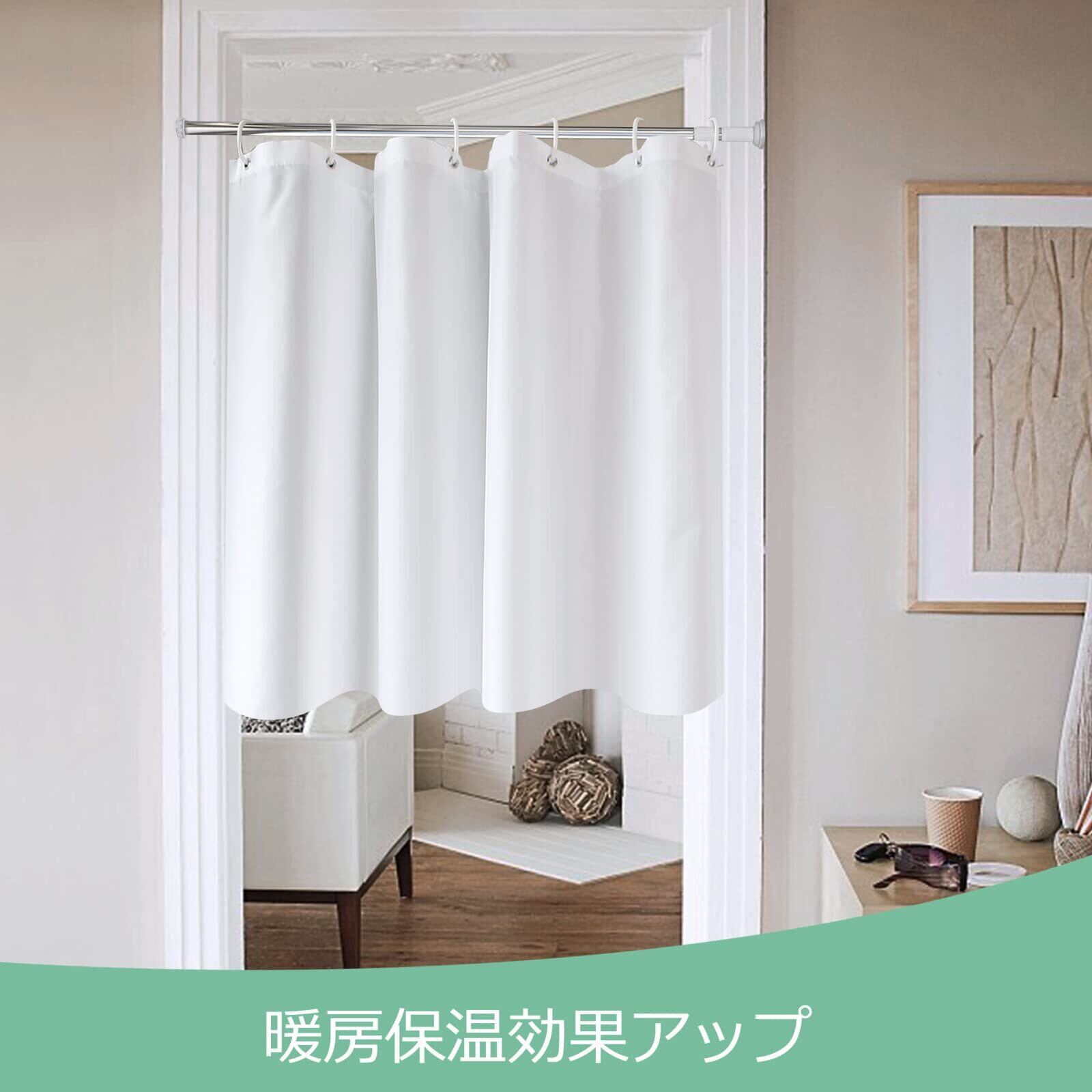 【耐久性・保温性】断熱性がよく、部屋暖房ロス抑制、保温効果があり、寒い冬でも安心できる間仕切りカーテン。 カーテン下に、加重を入れたため、ドレープ感がいいです。 カーテン上に、厚め加工、ハトメが防錆びの銅製加工で変形しにくく、丈夫で長持ちできます。