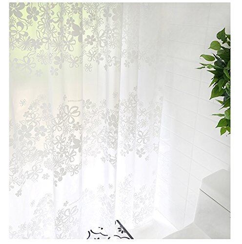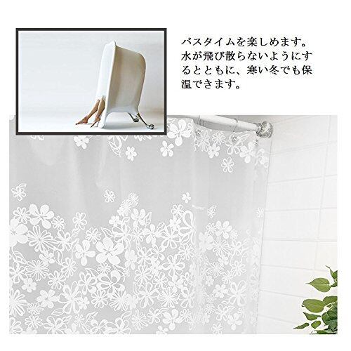 【特価セール】シャワーカーテン バスカーテン 防水防カビ加工 風呂 おしゃれ 目隠し 間仕切り 保温 取り付け簡単 (白い花柄, 横120cm×縦180cm)