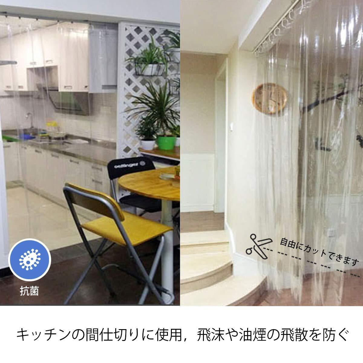【使用場所が広い】バスルームでよく使用されるが、飛沫防止、ウイルス対策、間仕切りなども使用できます。幅・丈をスペースに合わせて自由にカットします。バスルームはもちろん、洗面スペースやキッチンお部屋の目隠しや間仕切りにも便利です。 【サイズ】:180x180cm 素材:PVC パッケージ内容:本体x1+プラスチック製カーテンリングx12個