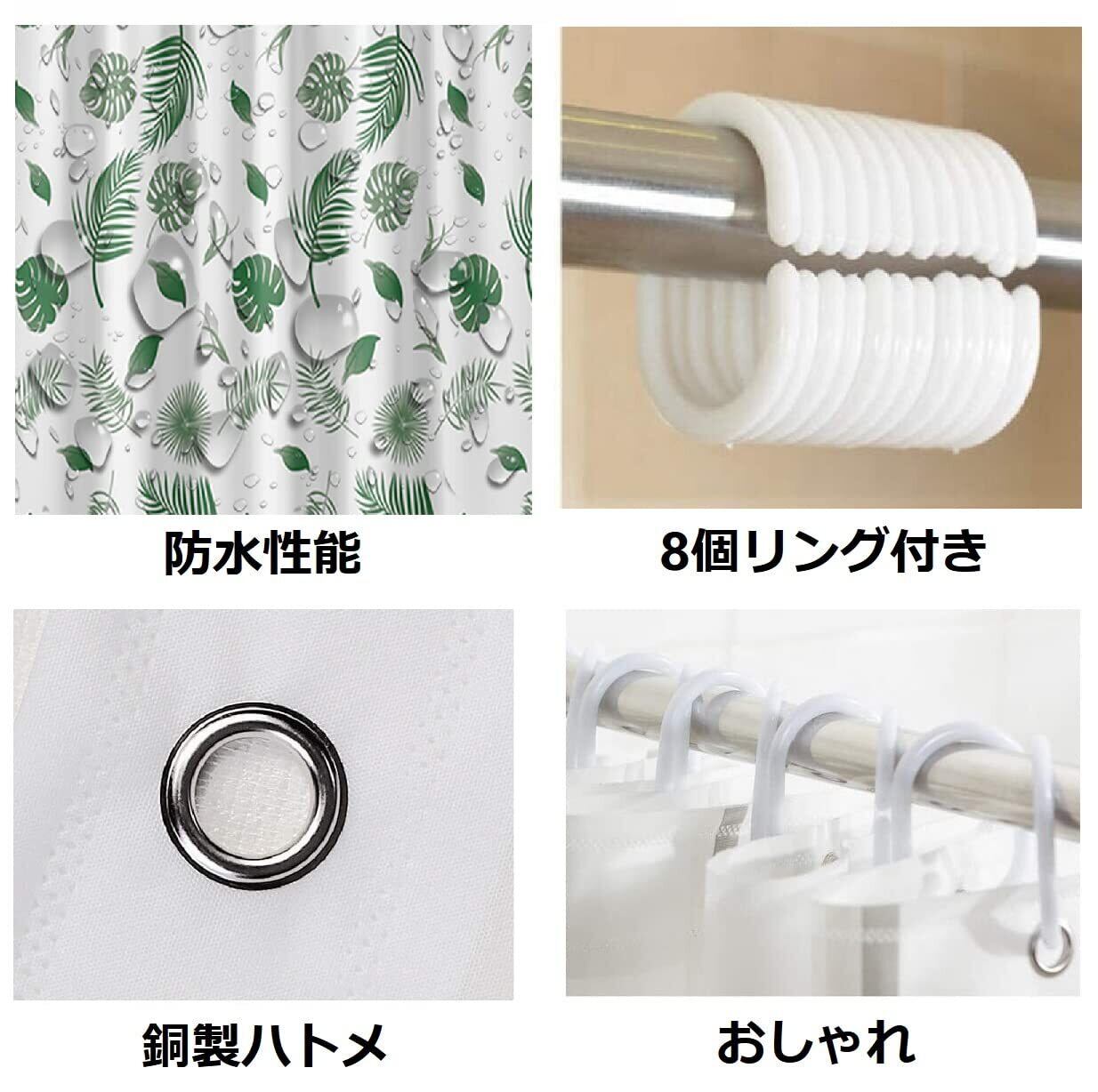 【新春セール】防水 防カビ シャワーカーテン 120*180cm 速乾 加厚 浴室目隠しカーテン お風呂仕切りカーテン インテリア プライバシー保護 洗面所 浴室 お風呂場適用 リング付き 取付簡単 (120*180cm 緑の葉っぱ)