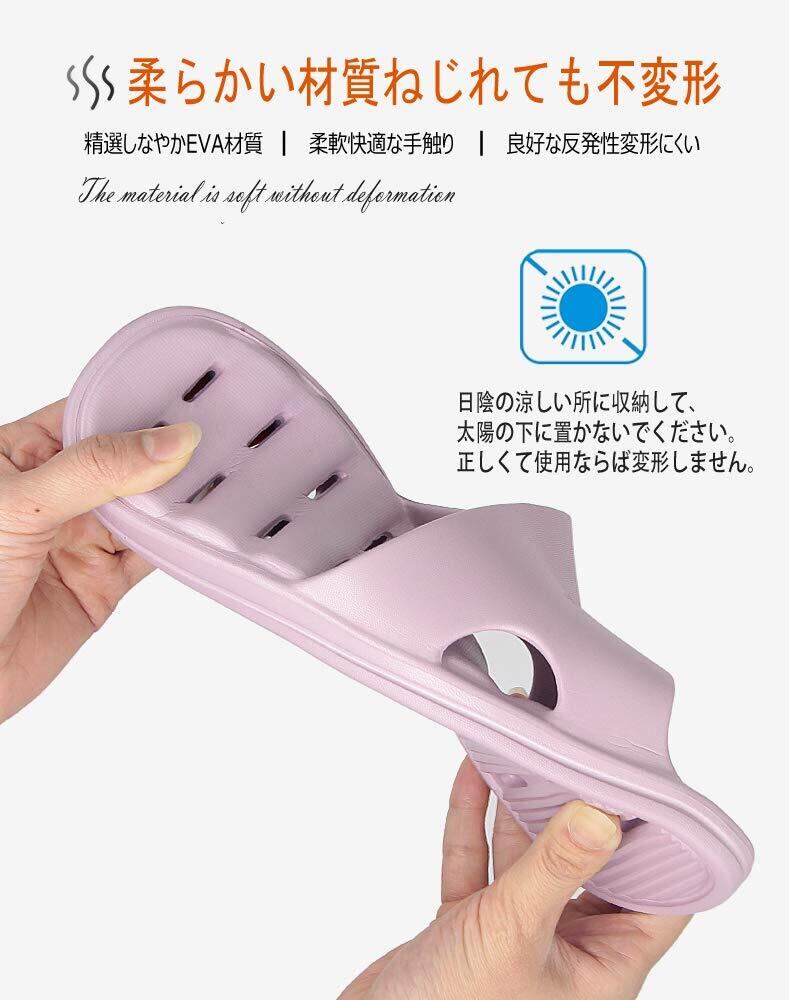 【安全EVA素材・抗菌】抗菌剤を練りこんだEVA生地を使用、抗菌作用があり、何回洗濯しても抗菌機能が持続する安心スリッパ。柔らかく作っており、ふわふわのクッション、長く履いても足は痛くない!【ご収納の注意】スリッパを日陰の涼しい所に収納しください。EVA素材は火のそばや直射日光の当たる場所に置くと、軟化又は変形(縮み)、退色の恐れがありまから、長時間直射日光禁止!!ご承知の程宜しくお願い致します。