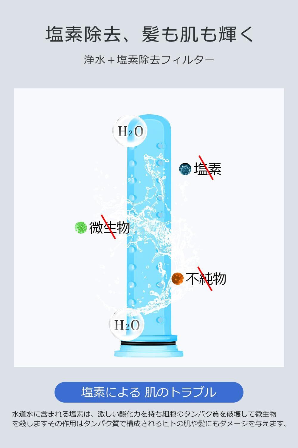 塩素による肌や髪への負担を軽減し、乾燥やかゆみの悩みも軽減。さらに、塩素除去により保温効果も向上し、シャワー後も体中ぽかぽかが続きます。リラックスしながら肌ケアもサポートします。