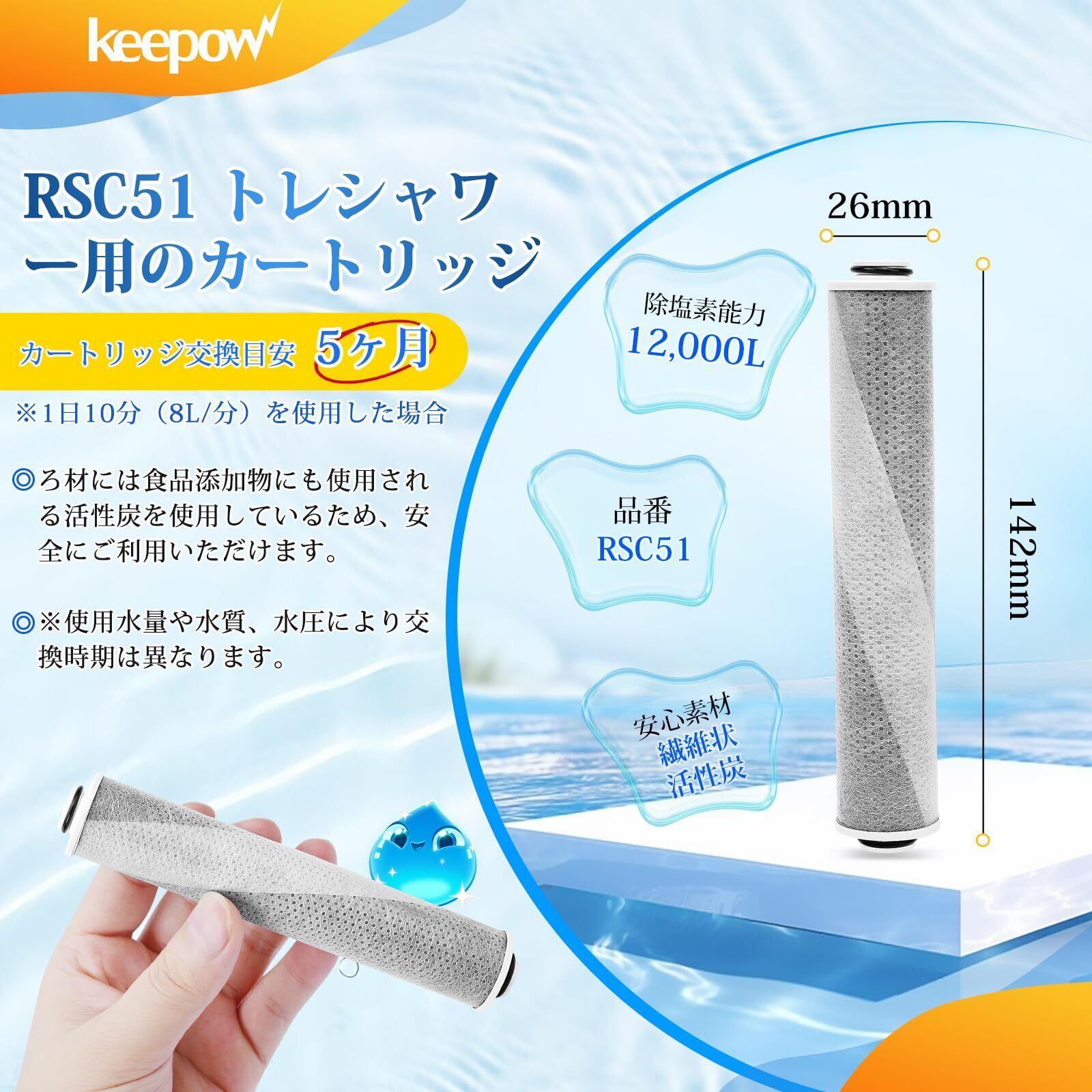 【在庫処分】RSC51 KEEPOW 東レ用のシャワーフィルター RSC51 高性能フィルター 塩素除去 重金属除去 浄水シャワー交換カートリッジ RSC51-2 トレシャワーRS54 RS53 RS52 RS51 交換用 シャワーカートリッジ 互換品 2本入り
