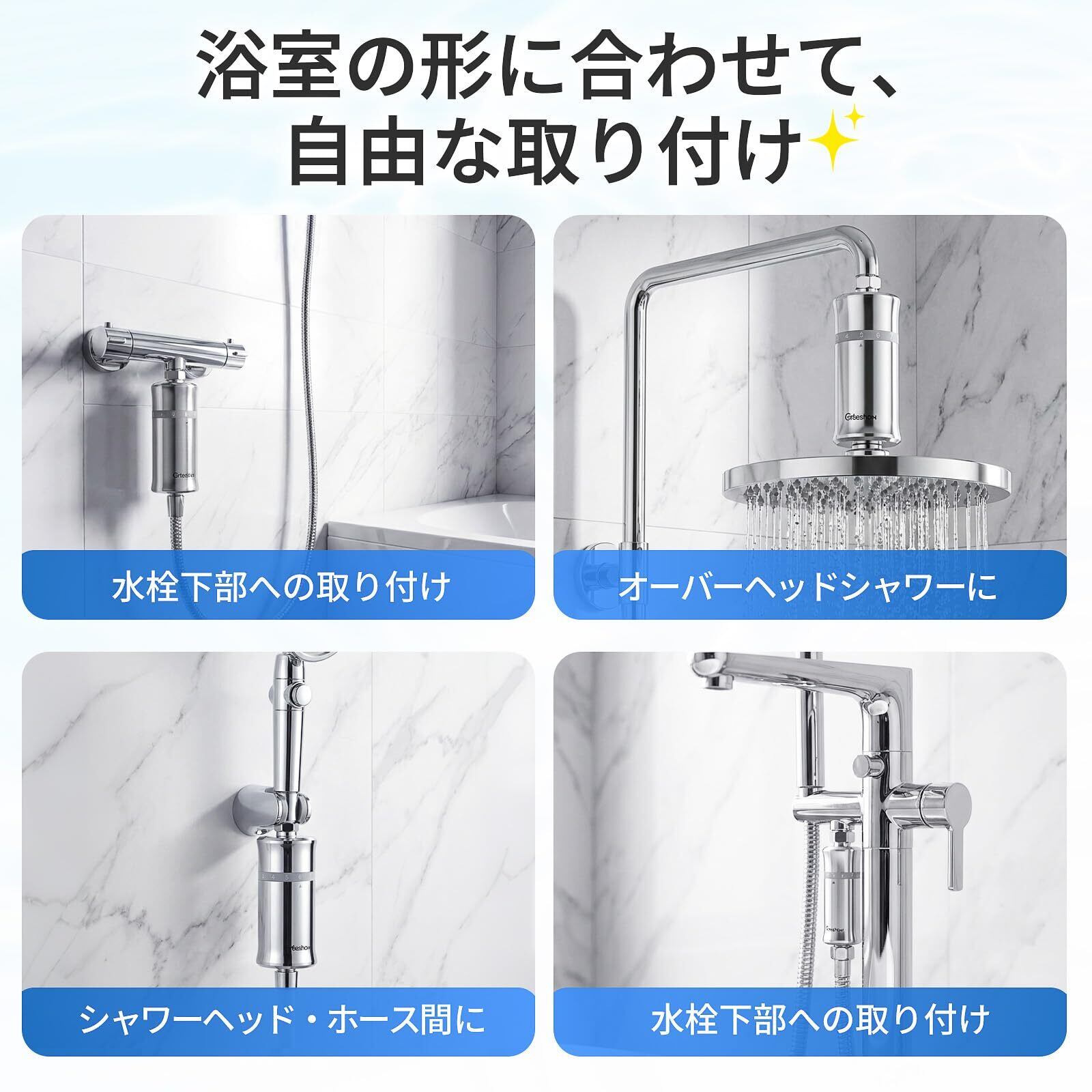 【髪と肌が変わる、驚異の塩素除去率98%】 水道水に含まれる残留塩素や不純物を徹底除去。シャワー後の髪のパサつきや肌のピリピリ感の原因となる「塩素ダメージ」から守ります。お使いのシャワーヘッドに取り付けるだけで、まるでサロン帰りのような、指通りなめらかな髪と、しっとりとした素肌へ。アトピーや敏感肌の方、赤ちゃんのデリケートな肌にも安心して使える、優しさを追求した水質へと導きます。