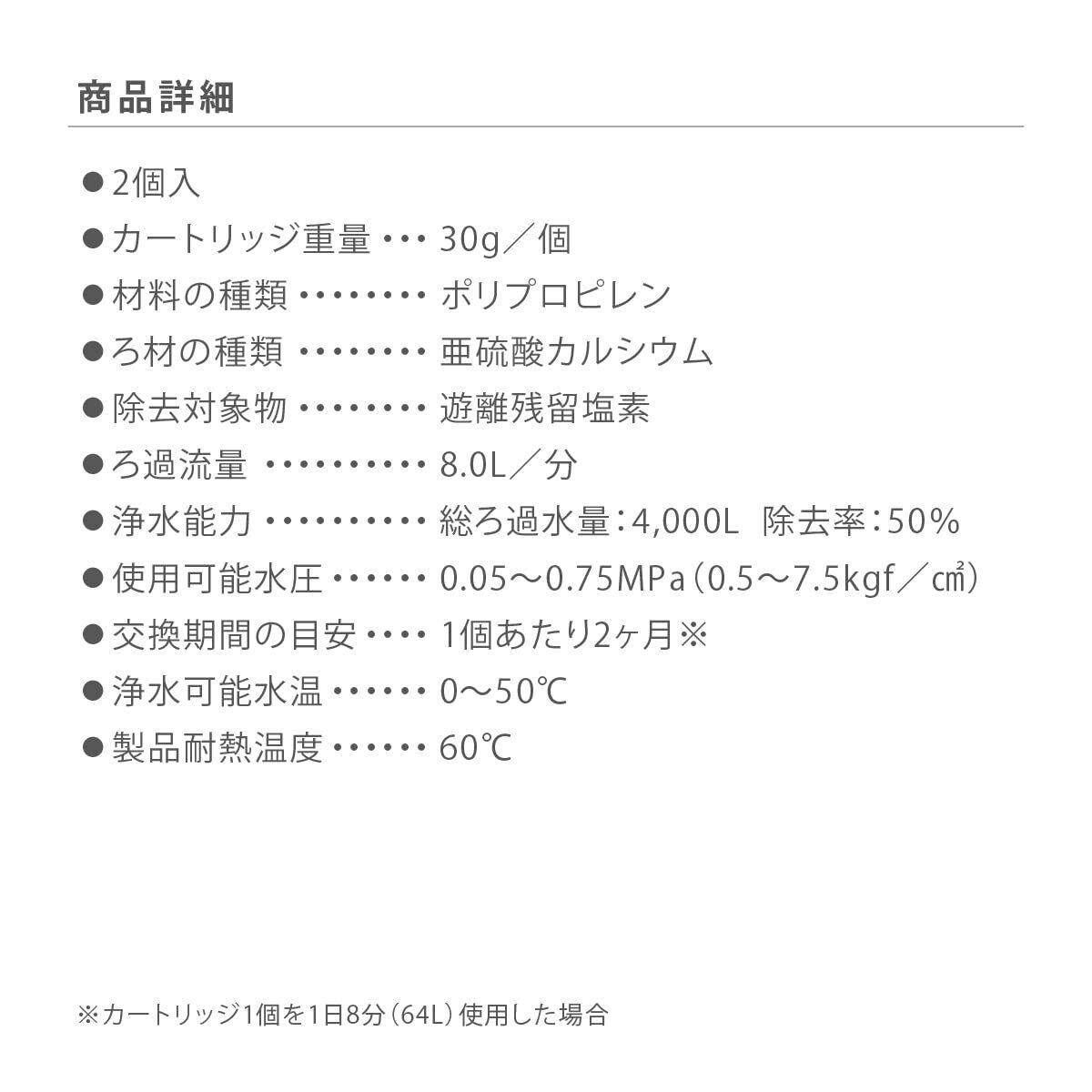 浄水能力:総ろ過水量 4,000L 除去率50%