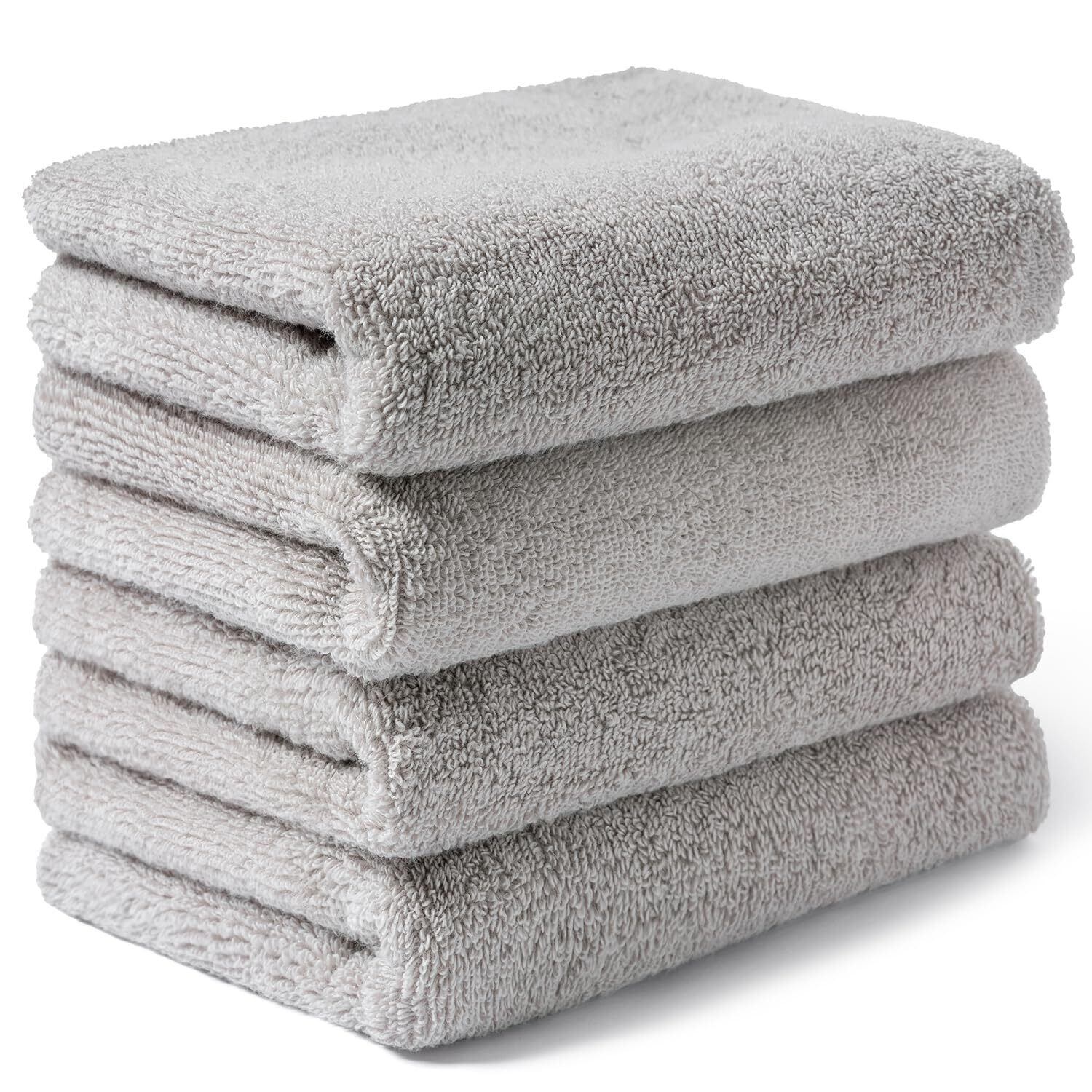 AIFY シティタオル フェイスタオル 4枚セット 厚手 ふわふわ 速乾 吸水 耐久性 綿 ホテル仕様 抗菌 防臭 無地 肌にやさしい エステ サロン 新生活 ギフト 34×80cm ライトグレー