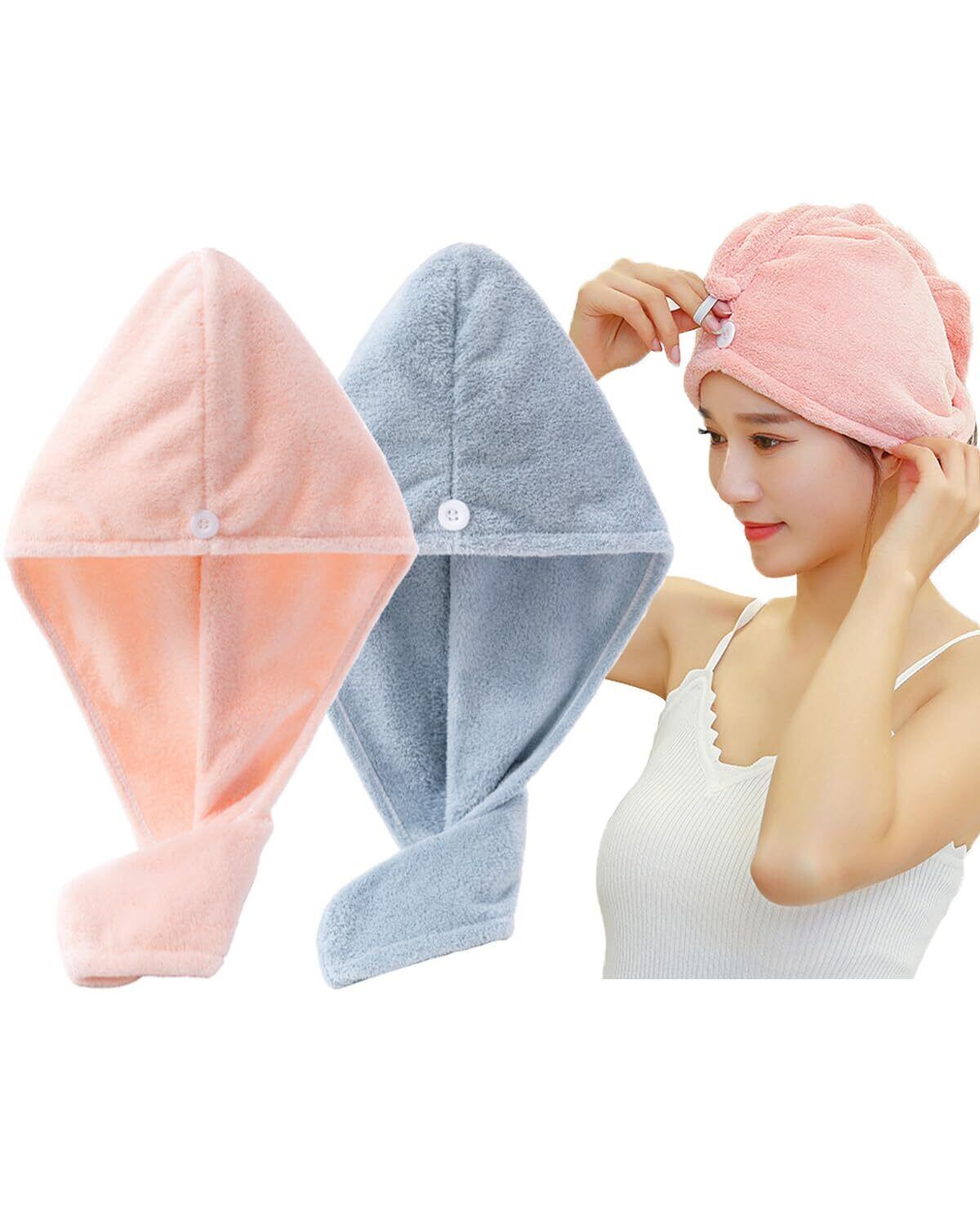 【2022最新】ヘアドライタオル ドライキャップ 速乾 髪タオル 長い髪専用 軽量 シャワーキャップ 強い吸水性 お風呂上がり タオルキャップ ふわもこ ヘアターバン ヘアキャップ バス用品(ピンク+水色)