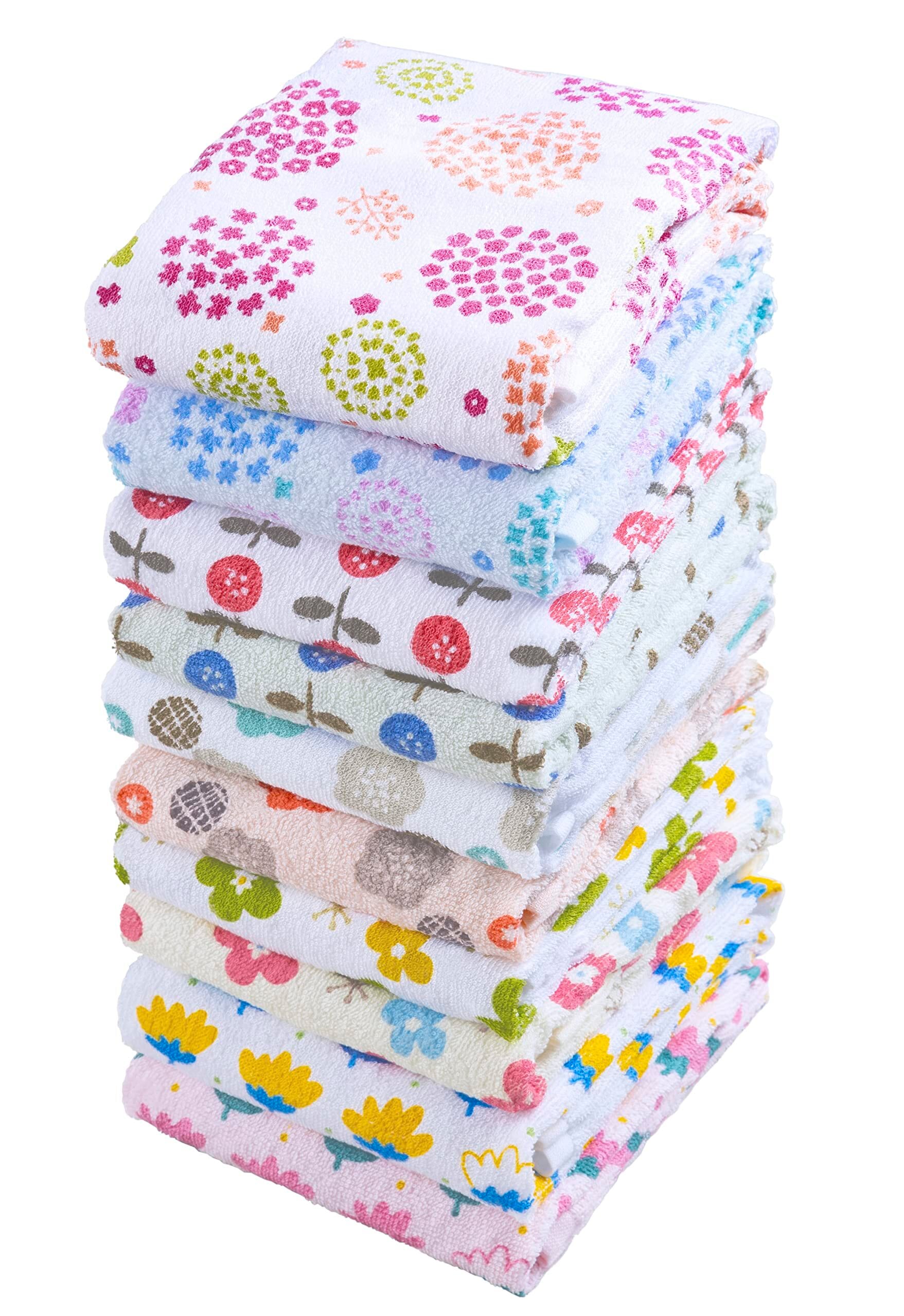 Kosugizen フェイスタオル よくばりプリントタオル フラワー 5柄2色×1枚入 34×80㎝ 乾きやすい薄手タイプ まとめてお得 10枚セット SV-2011-10