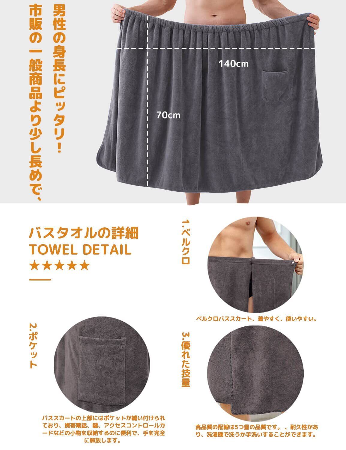 【在庫セール】ラップタオル 大人用 巻きタオル プールタオル メンズ 速乾 大判 バスローブ 柔らかい バスタオル ビーチタオル 吸水速乾 肌触り プール用タオル 70cm丈 暗灰色