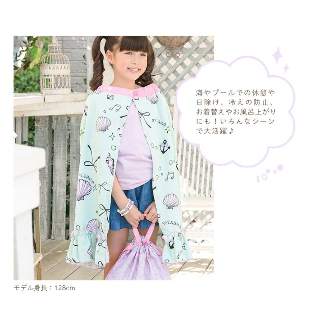 ラップタオル キッズ 女の子 巻きタオル 子供 貝殻柄 フリル ワンピース風 ユニコーンLavender 70cm丈