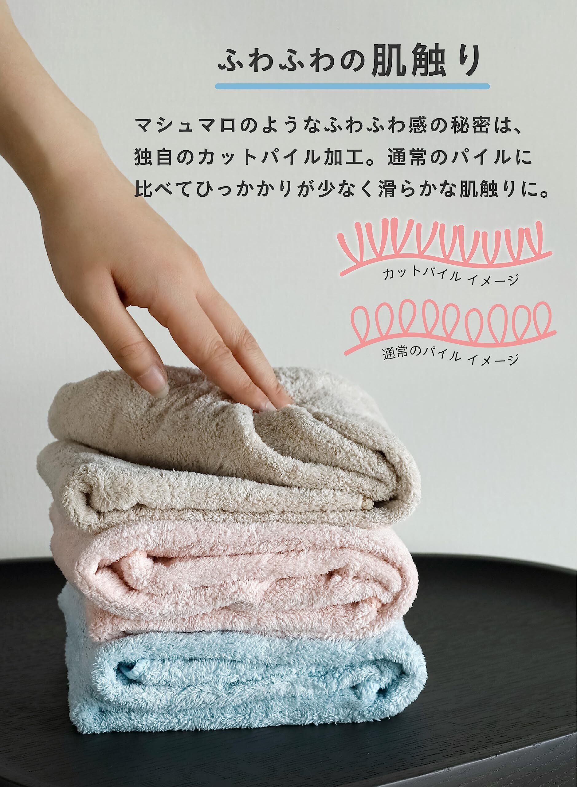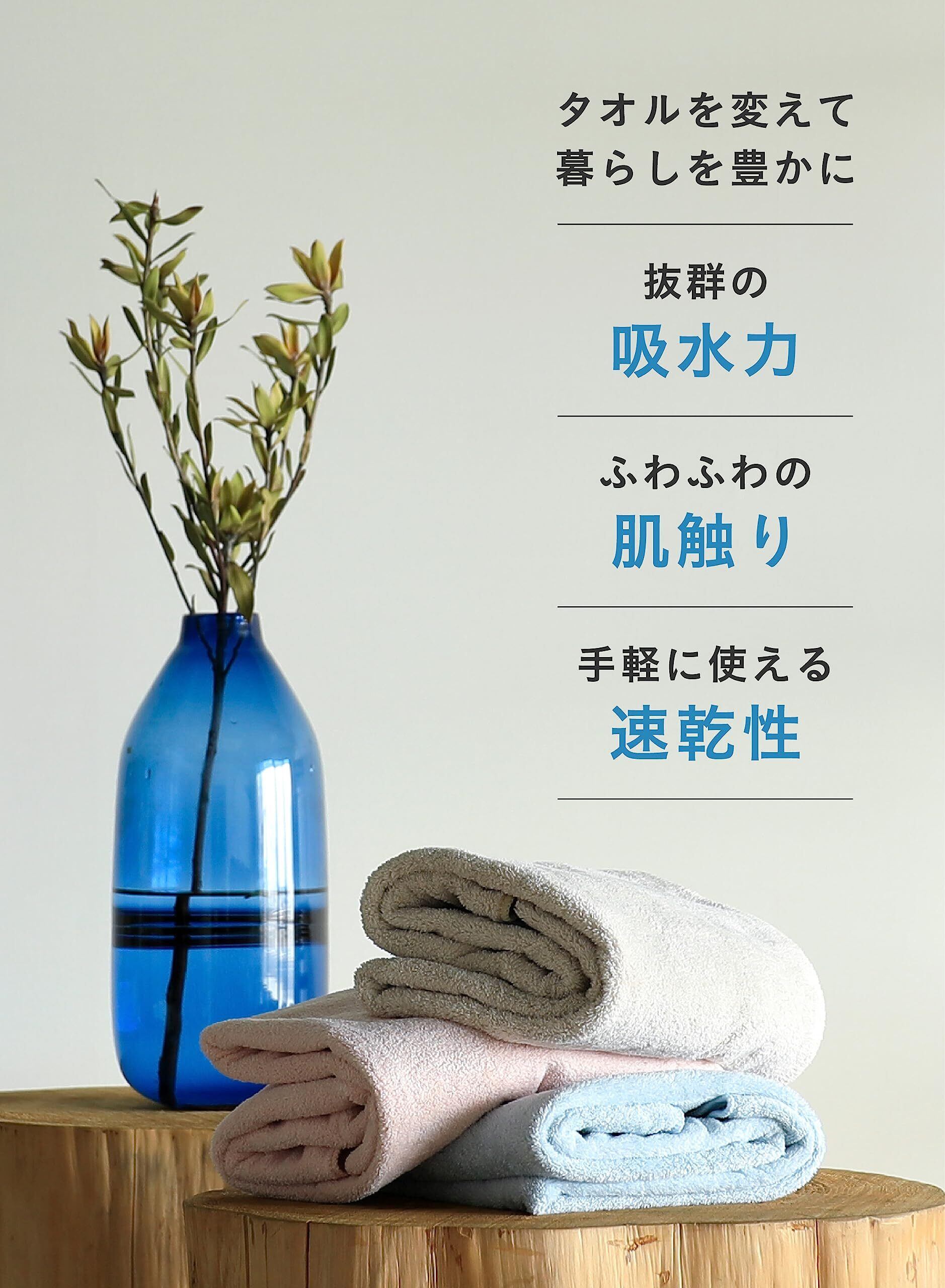落ち着いた色合いと抜群の吸水力、マシュマロのようなふわふわの肌触りまで叶えたマイクロファイバータオル。日常に欠かせないタオルだからこそ使い心地にこだわったcarari(カラリ)シリーズのタオル