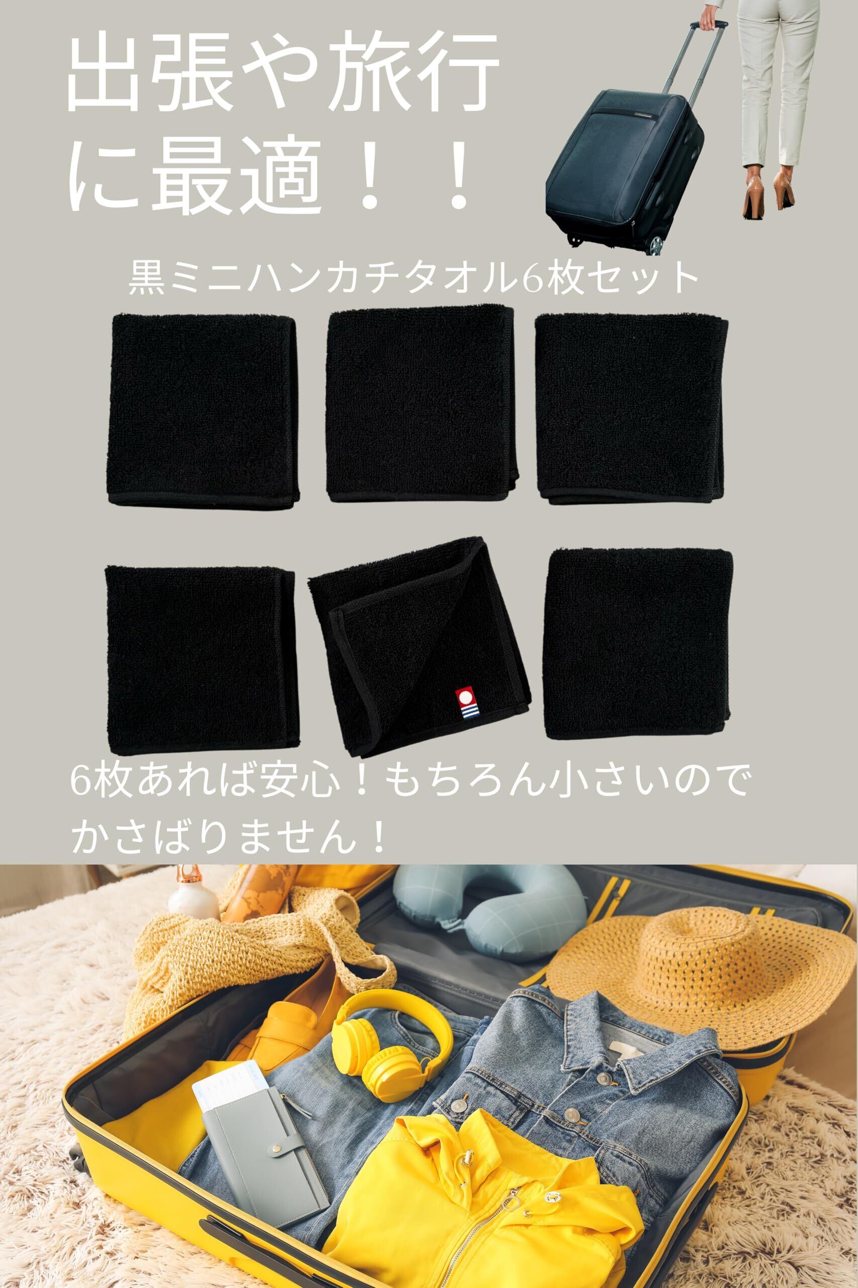 今治タオル 黒 ミニタオルハンカチ 6枚セット 約20cm×20cm 小さくてもしっかり拭ける コンパクトなサイズ KUROKU 日本製 今治 綿100% コットン100%