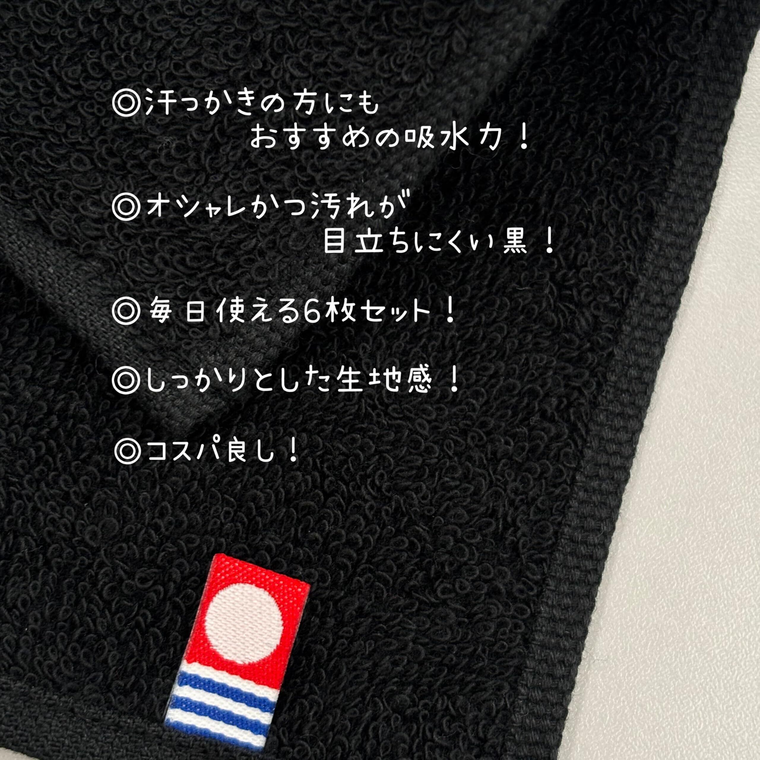 ■シンプルでかっこいいブラックデザインのミニタオルハンカチ6枚セットです。