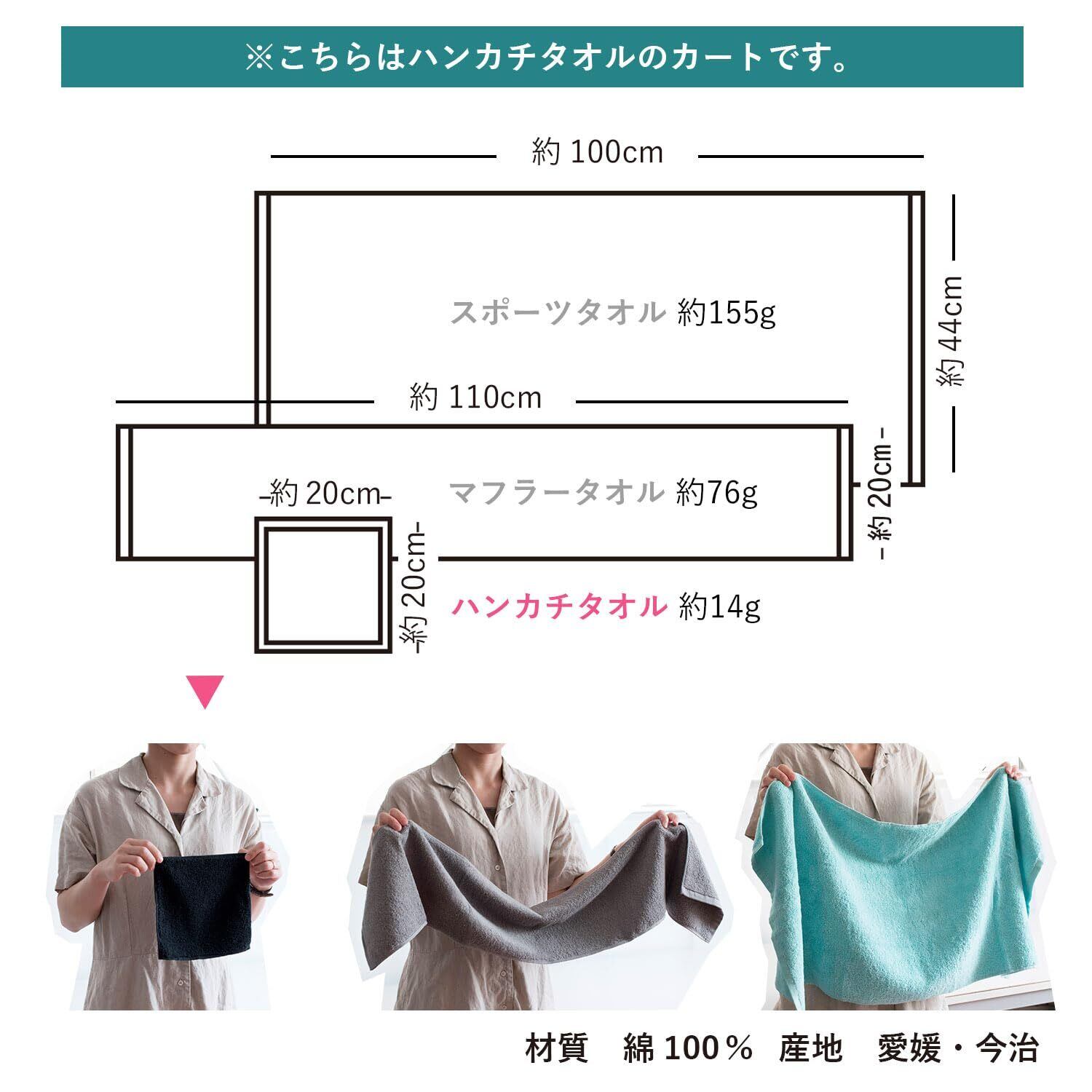 【RUN TOWEL】 今治タオル認定付きハンカチ 約20×20cm、重さ:14g、綿100% 、産地:今治/愛媛県