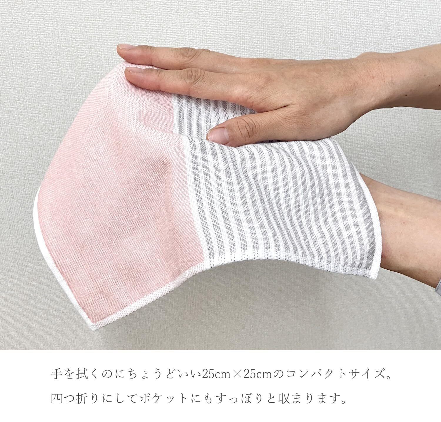 吸水性に優れた綿素材を使用し、日常使いに適したサイズ感で持ち運びにも便利です。