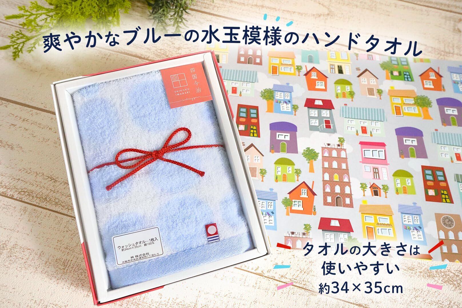 「フランスのカラフルで可愛い街並み」をテーマにしたオシャレな包装紙で包んだ、世界に誇るMADE IN JAPAN(日本製)綿100%の「今治 タオル」。百貨店ギフトにも劣らない上質なワンランク上の今治 タオルはいかがですか? ハンドタオルサイズで、ドット柄なのもとっても使いやすいですよね!(タオルサイズ:約34×35cm)