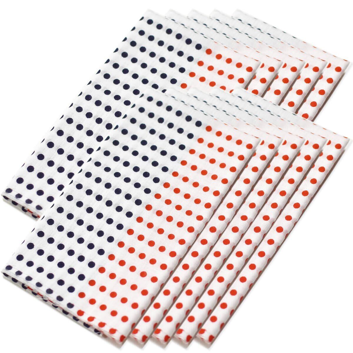 夜明屋 日本製 手拭い 豆絞り 綿100% 33cm×90cm 10枚セット 手ぬぐい 和柄 祭 剣道 ハチマキ 赤・紺
